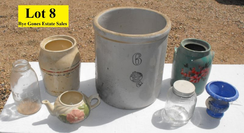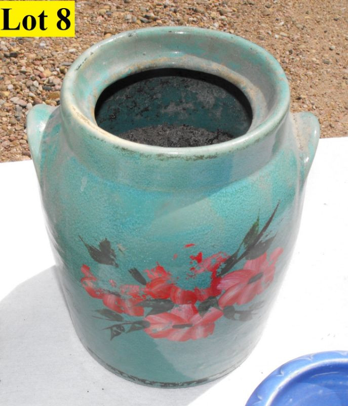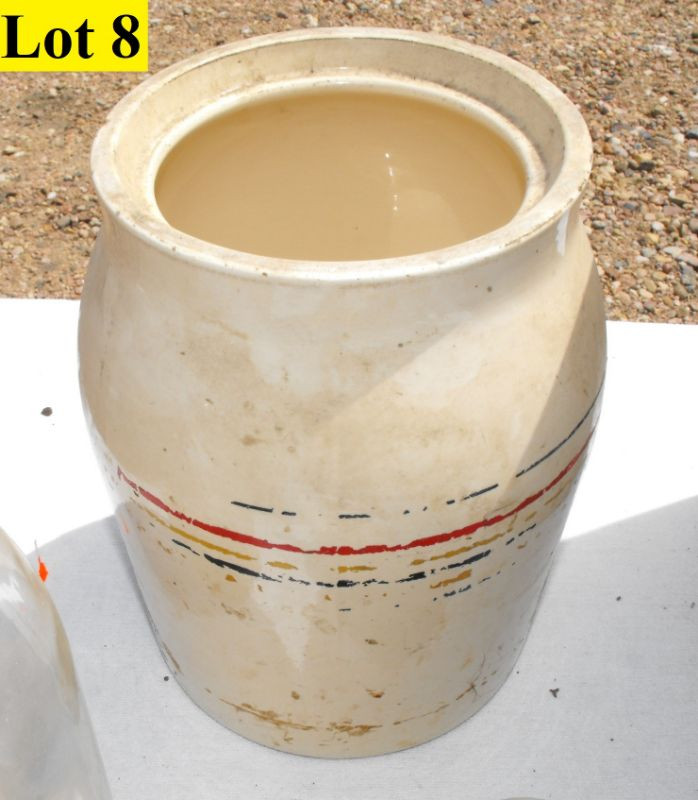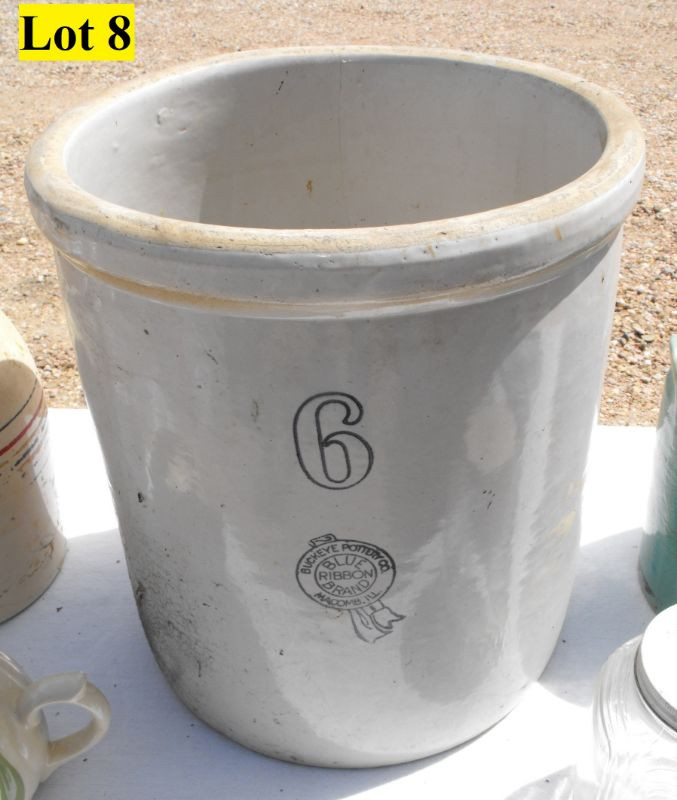 #6 Buckeye Pottery Crock has a few hairline cracks and damage to exterior toward the bottom of crock (see pictures)
