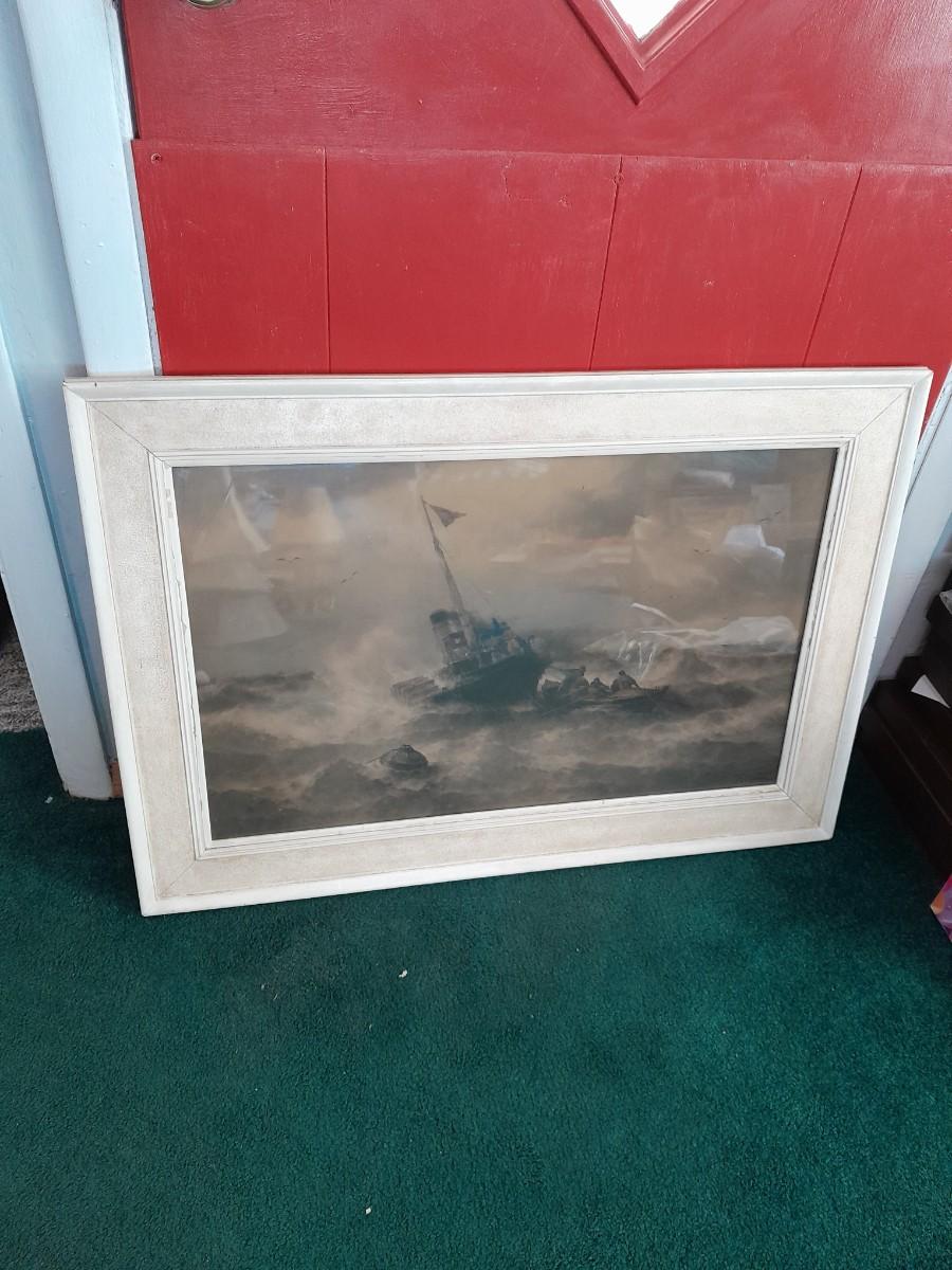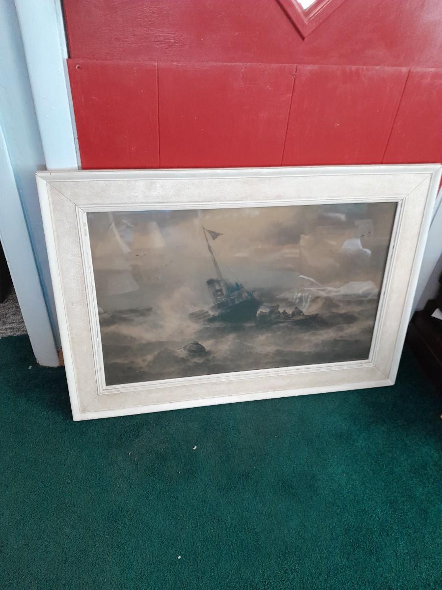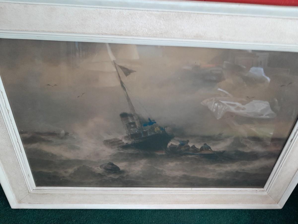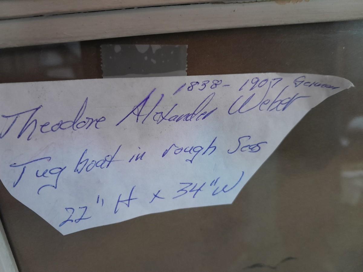VINTAGE FRAMED THEODORE ALEXANDER WEBER 1838-1907 "TUGBOAT IN ROUGH SEAS" 22" X 34" ARTWORK
