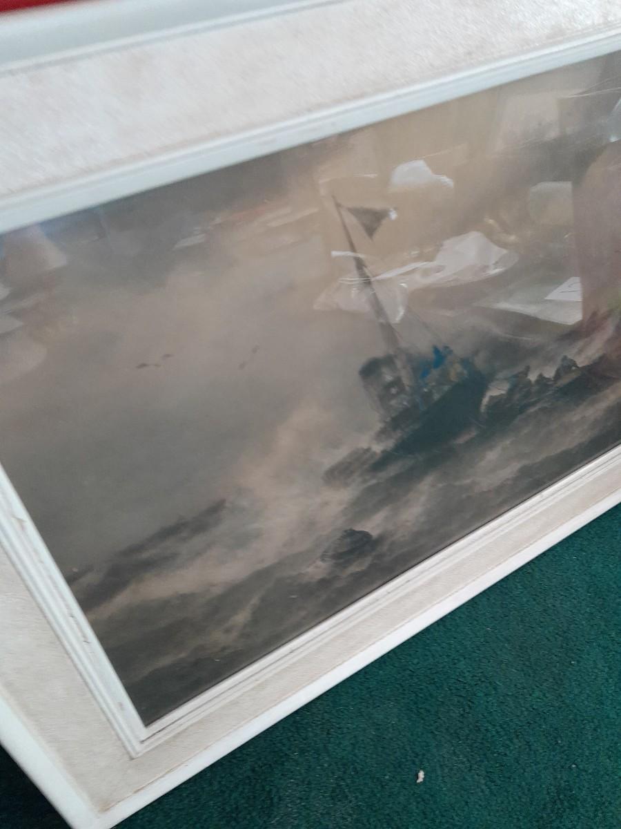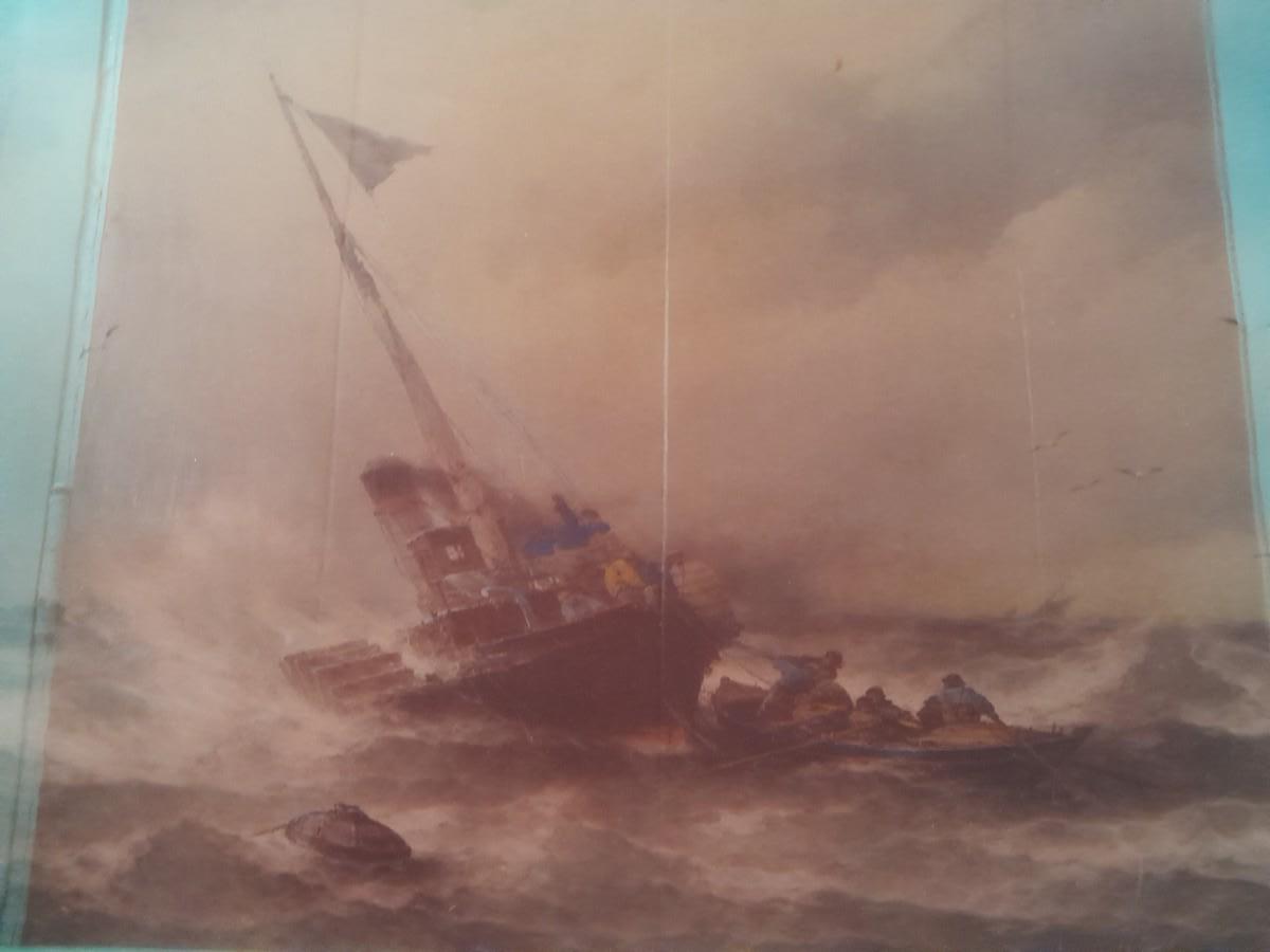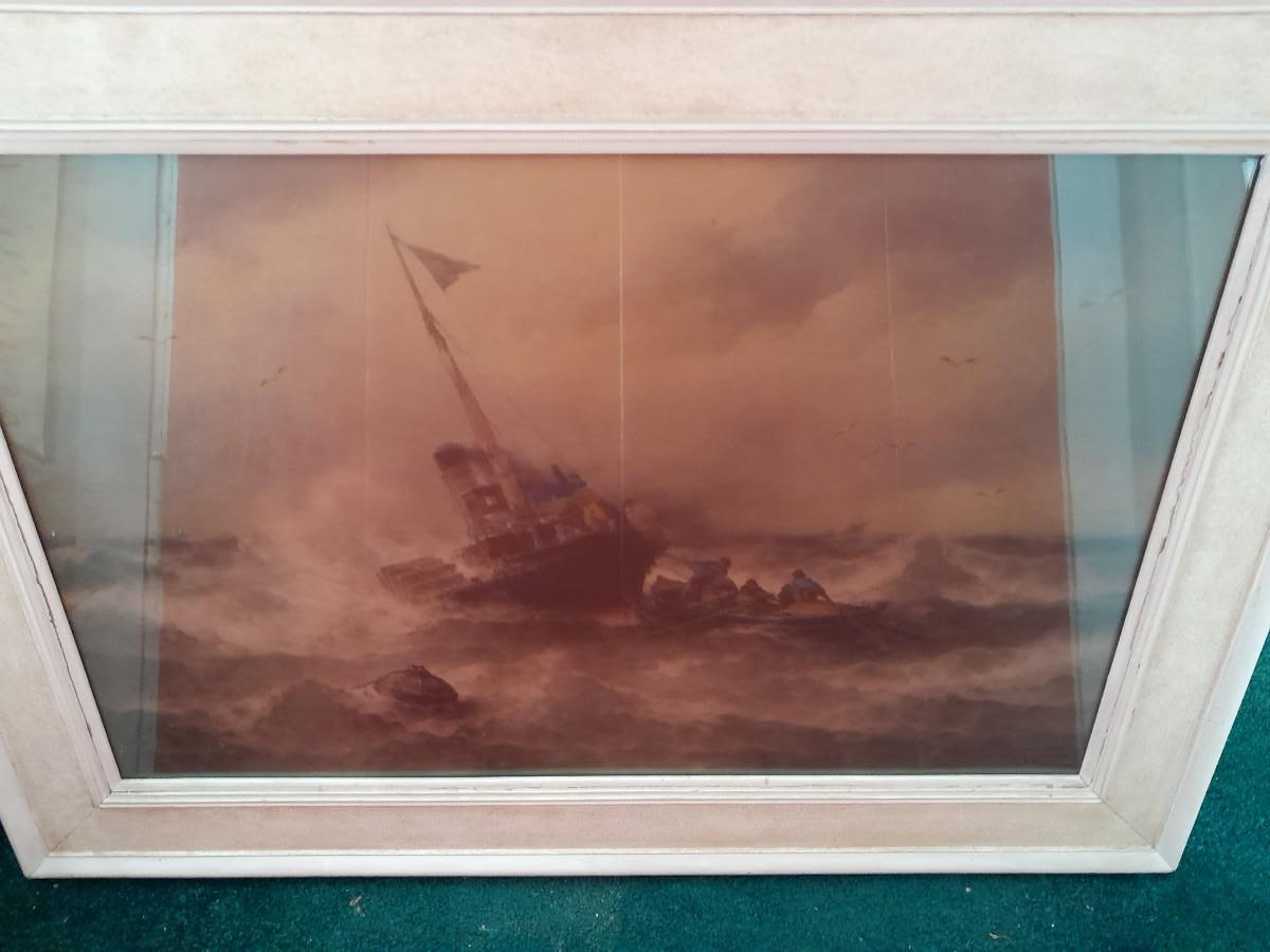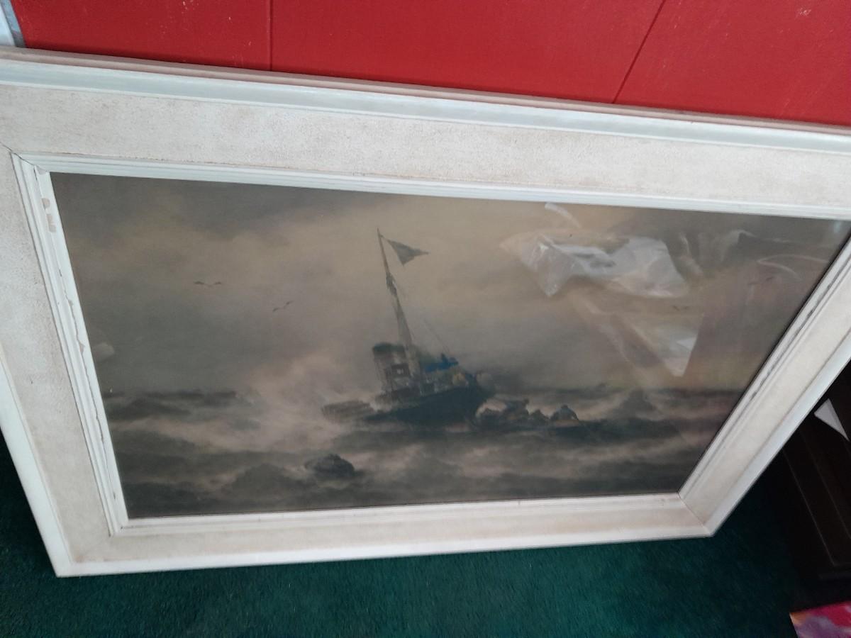 VINTAGE FRAMED THEODORE ALEXANDER WEBER 1838-1907 "TUGBOAT IN ROUGH SEAS" 22" X 34" ARTWORK