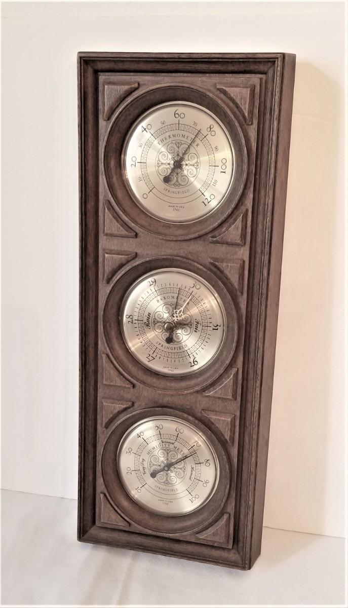 Three in one - vintage Springfield brand Barometer, Thermometer, and Humidity gauge. Good vintage condition. 1970's.