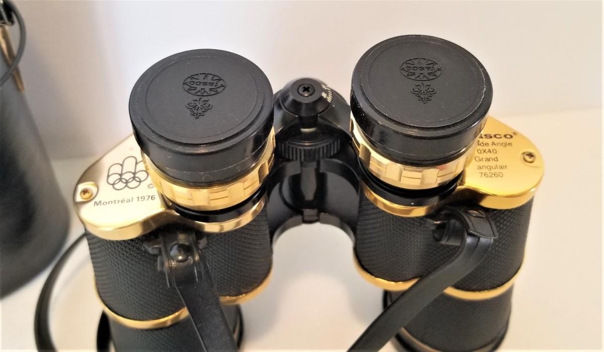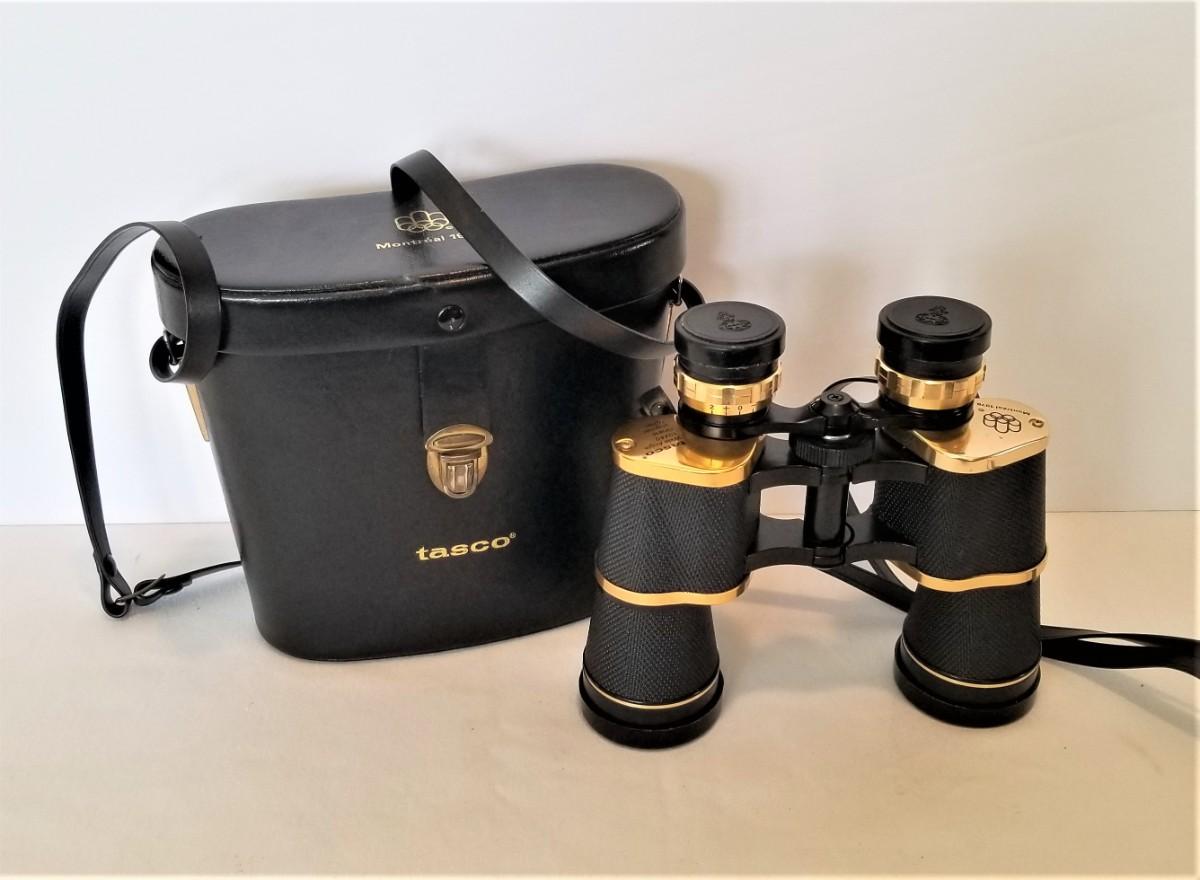 Dated 1976 (with the Montreal Olympics symbol), TASCO binocular set in original case - 10x40 wide angle lenses (comes with lense covers). Appears to be in good working condition.