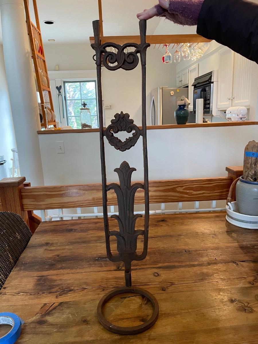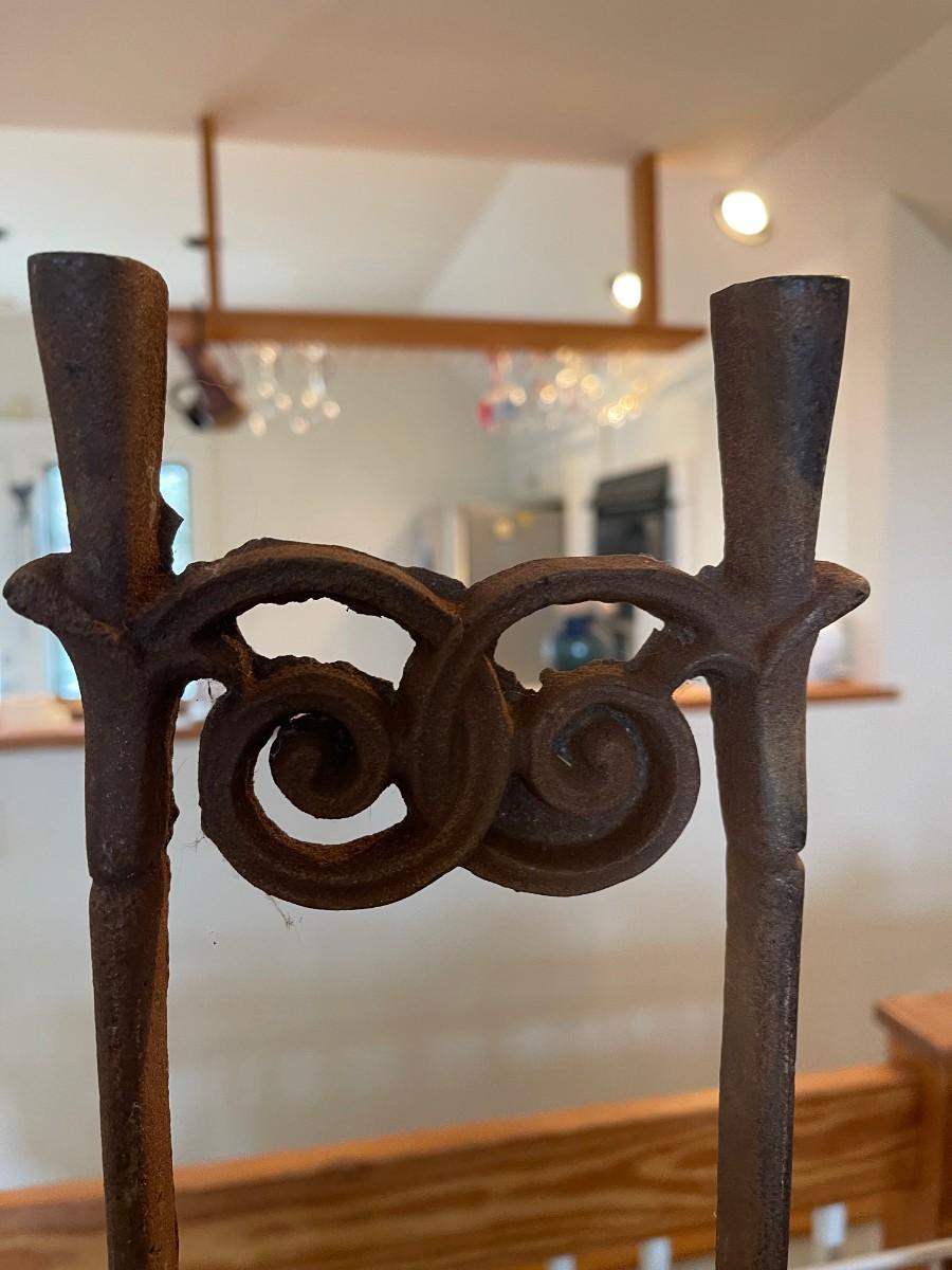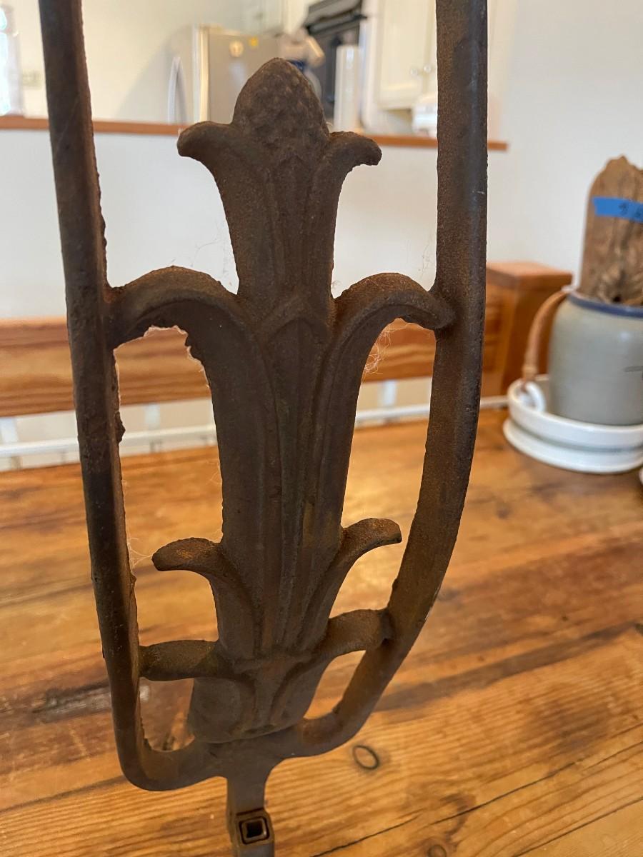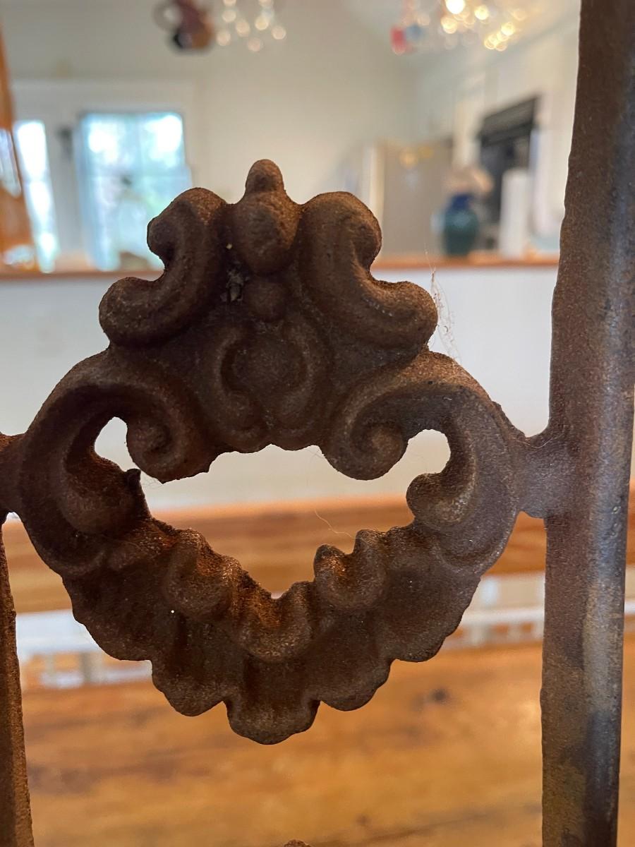 Heavy, architectural accent, rustic finish, cast iron scroll.