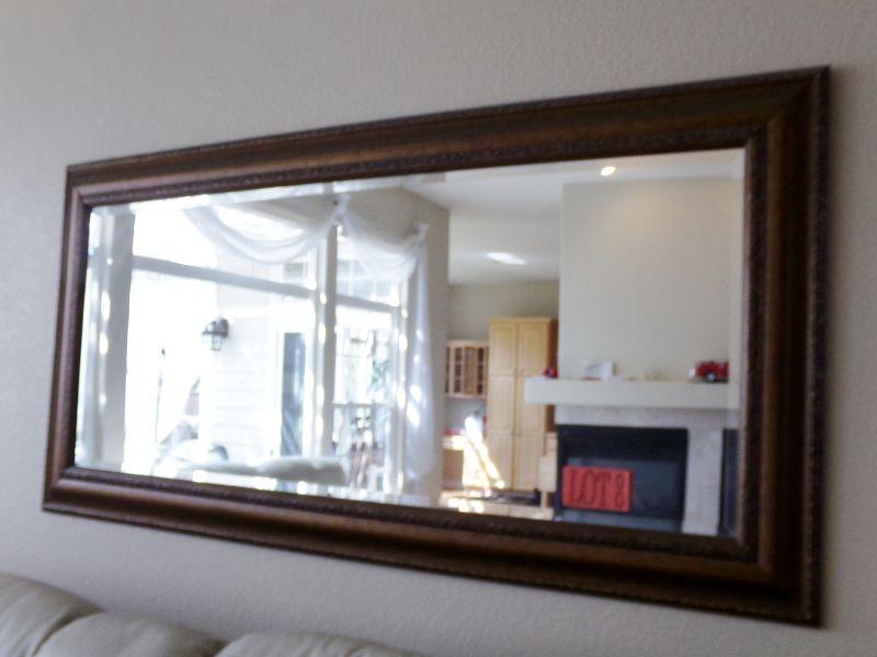 Wall Mirror measures 66" x 32" and the frame is made out of a light metal