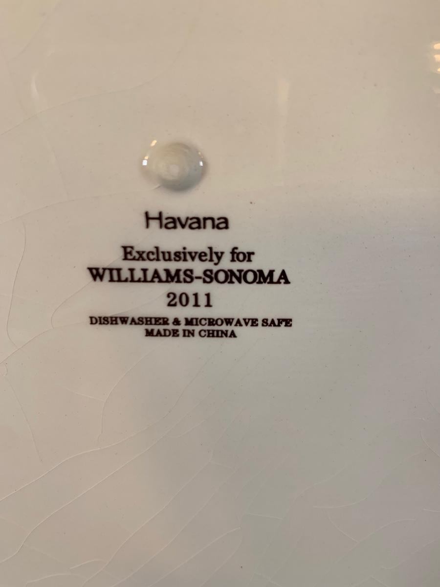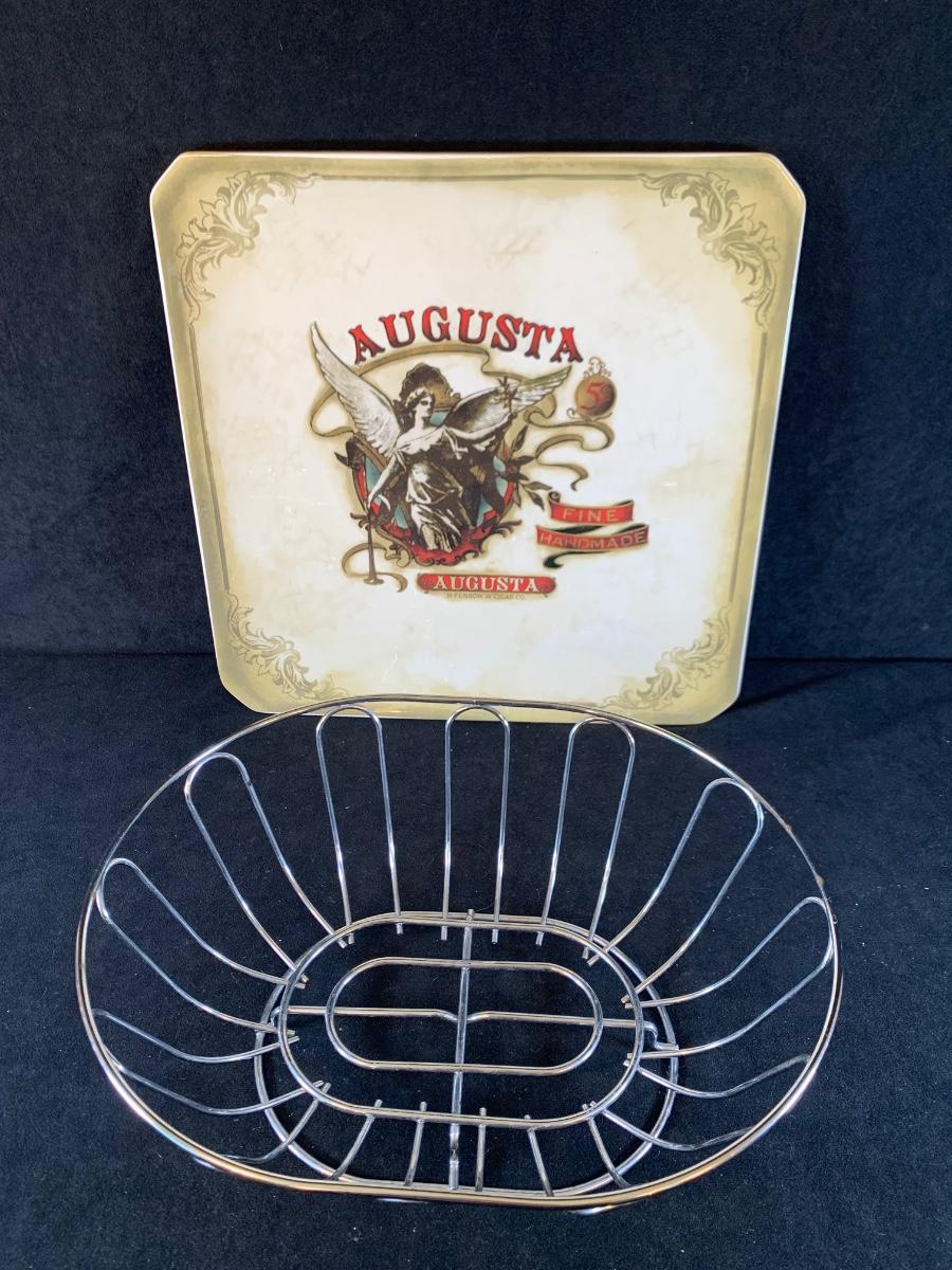 Includes a made exclusively for William Sonoma "Augusta N-Fenbow. W Cigar Co Havana" serving platter from 2011. Dishwasher and Microwave safe. Platter is 12.5" x 12.5". Wire bread basket also included.