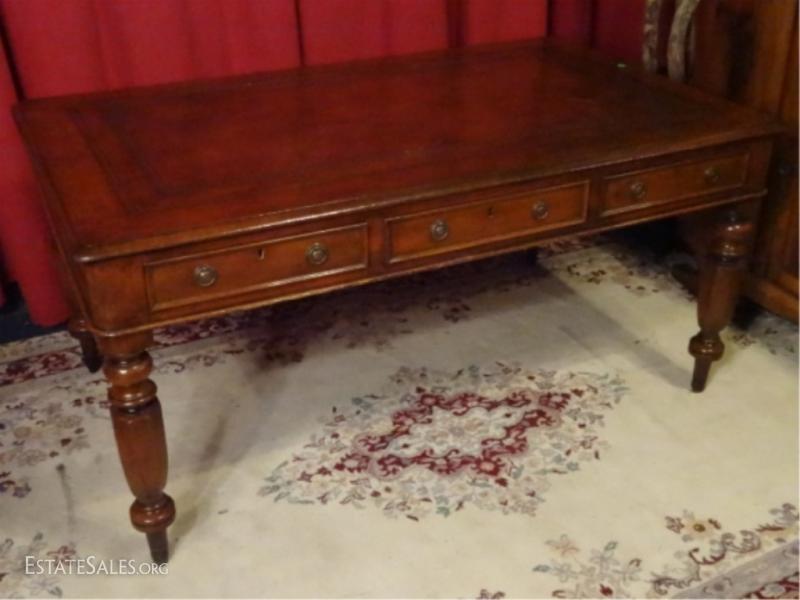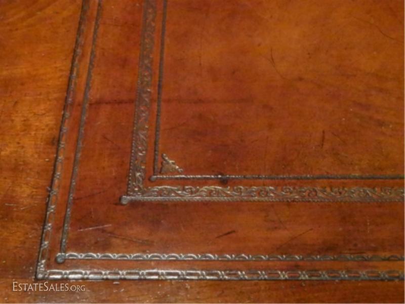 LOT 80: 19TH C. ENGLISH REGENCY PARTNER'S DESK, EMBOSSED LEATHER TOP