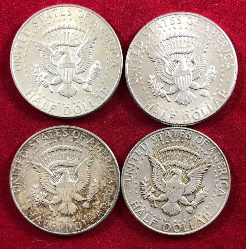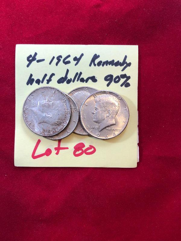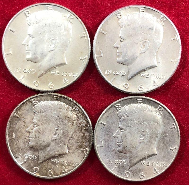 Lot #80- 4 1964 Kennedy Half Dollars 90% Silver Coins