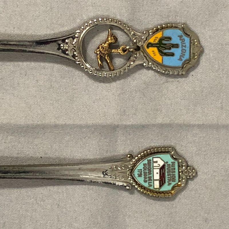 One each from Sequoia National Park, Arizona, Palm Springs, and Mission Nuestra Senora De La Soledad. They appear to be a standard, lightweight metal.