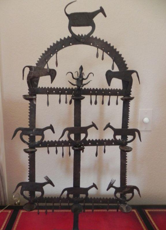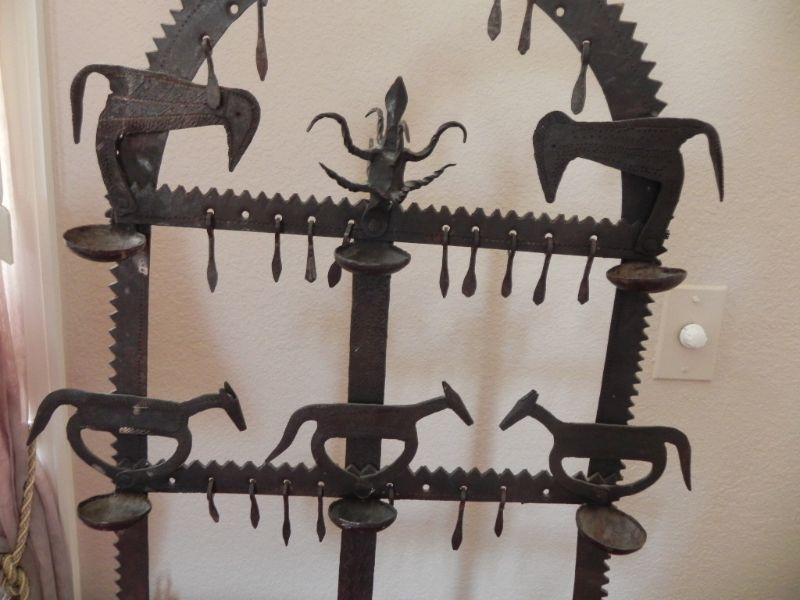 FREESTANDING IRON ART PIECE, SPIRITUAL? CANDLE HOLDER WITH ANIMALS