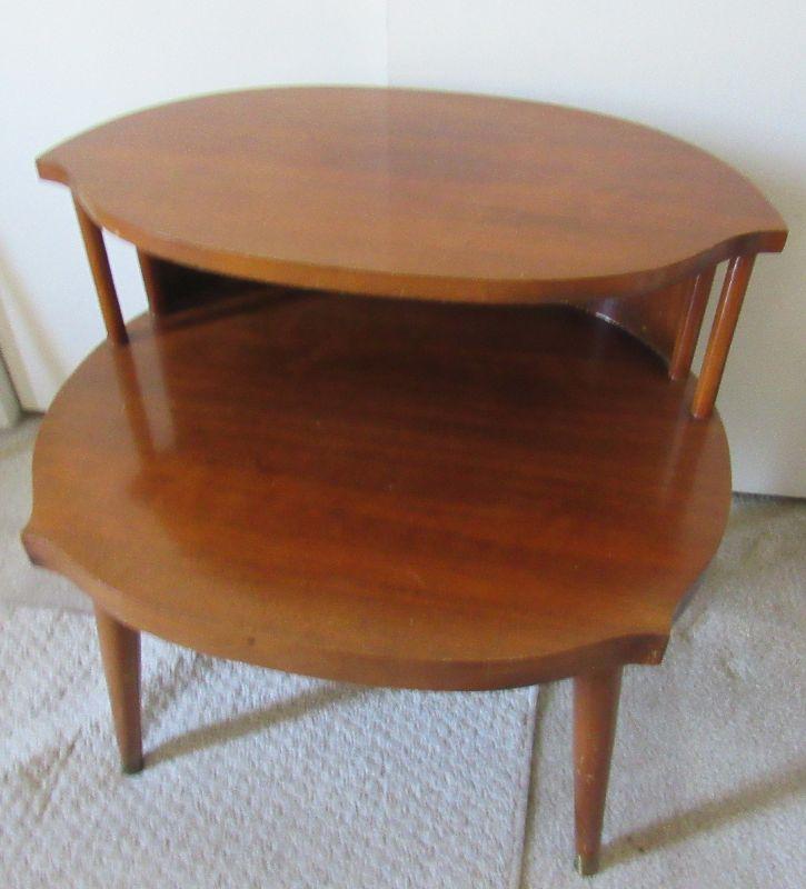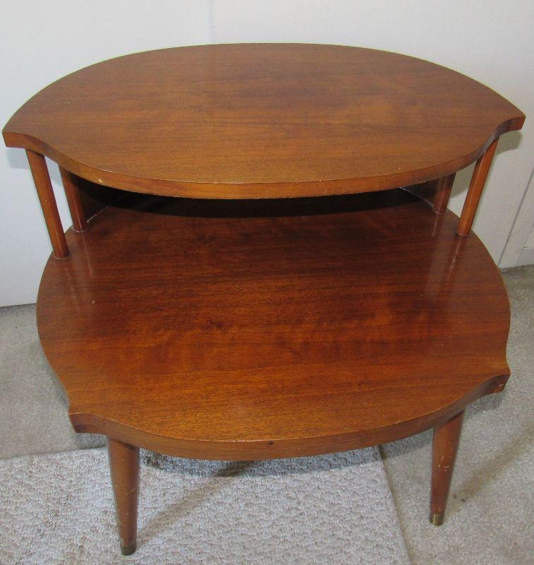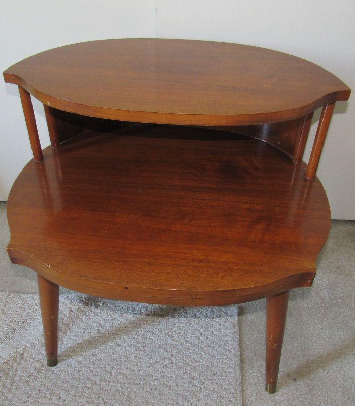Lot 80- Mid Century Danish Teak Double Tier Side Table Rare Shape