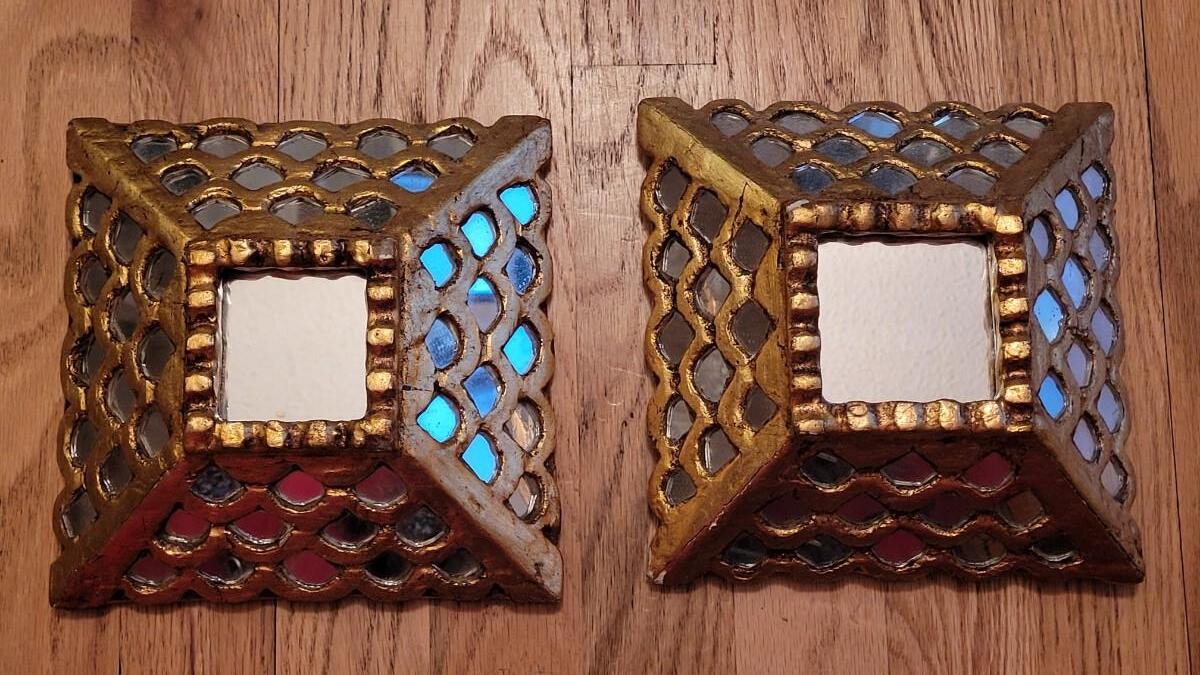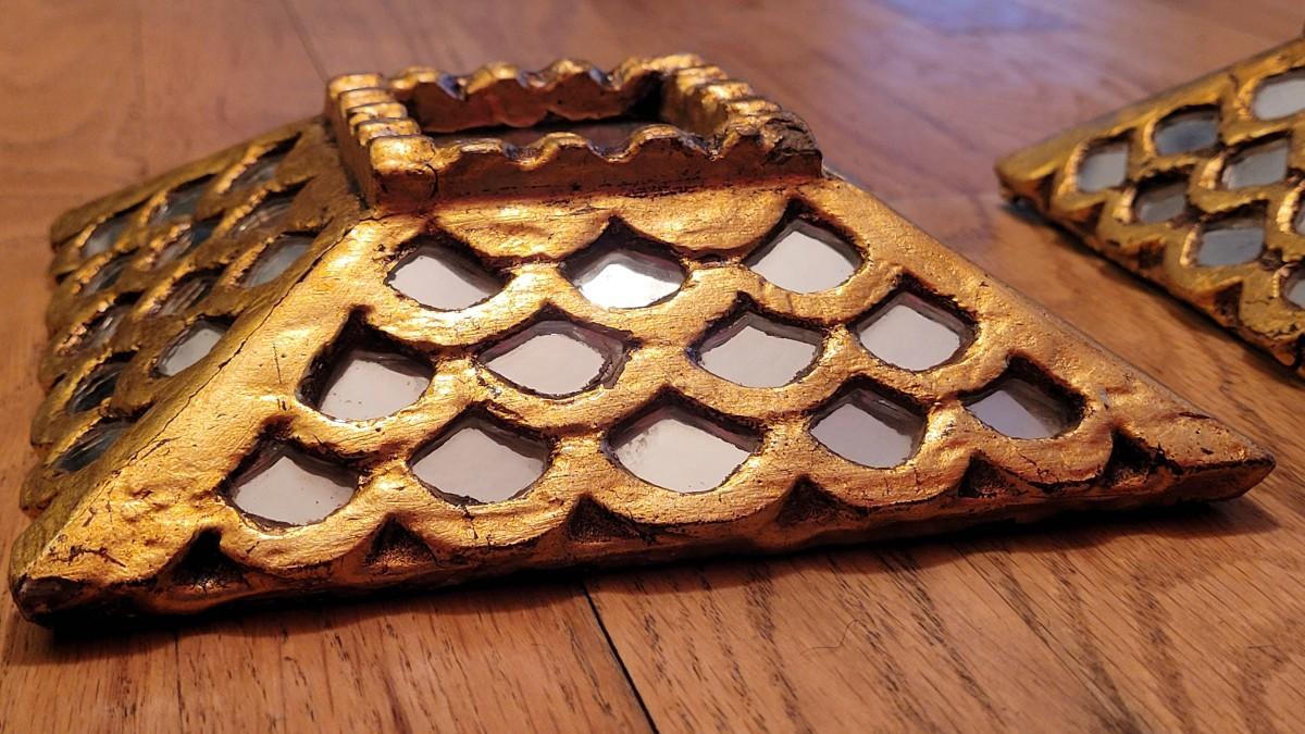 Lot 80: Pair of Pyramid Shape Gilt Wood and Mirror