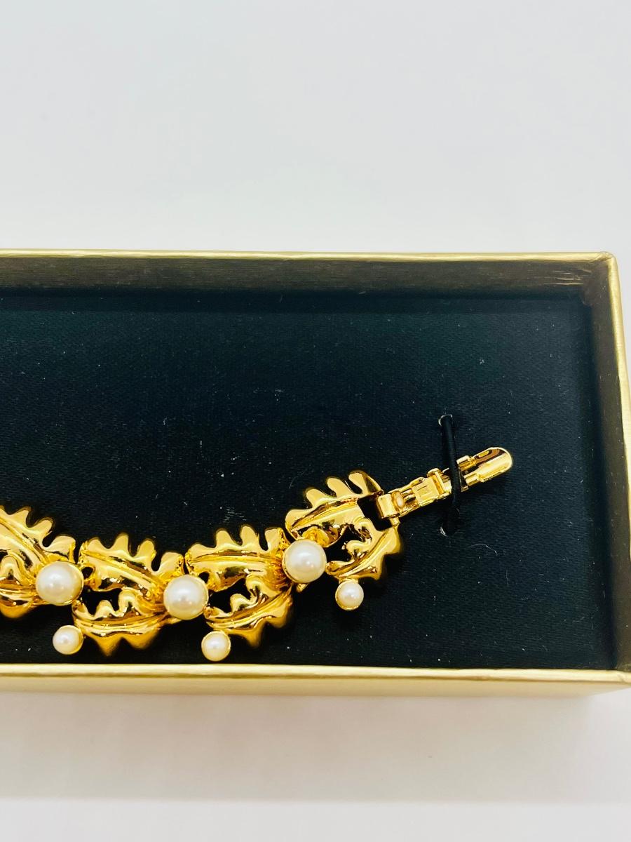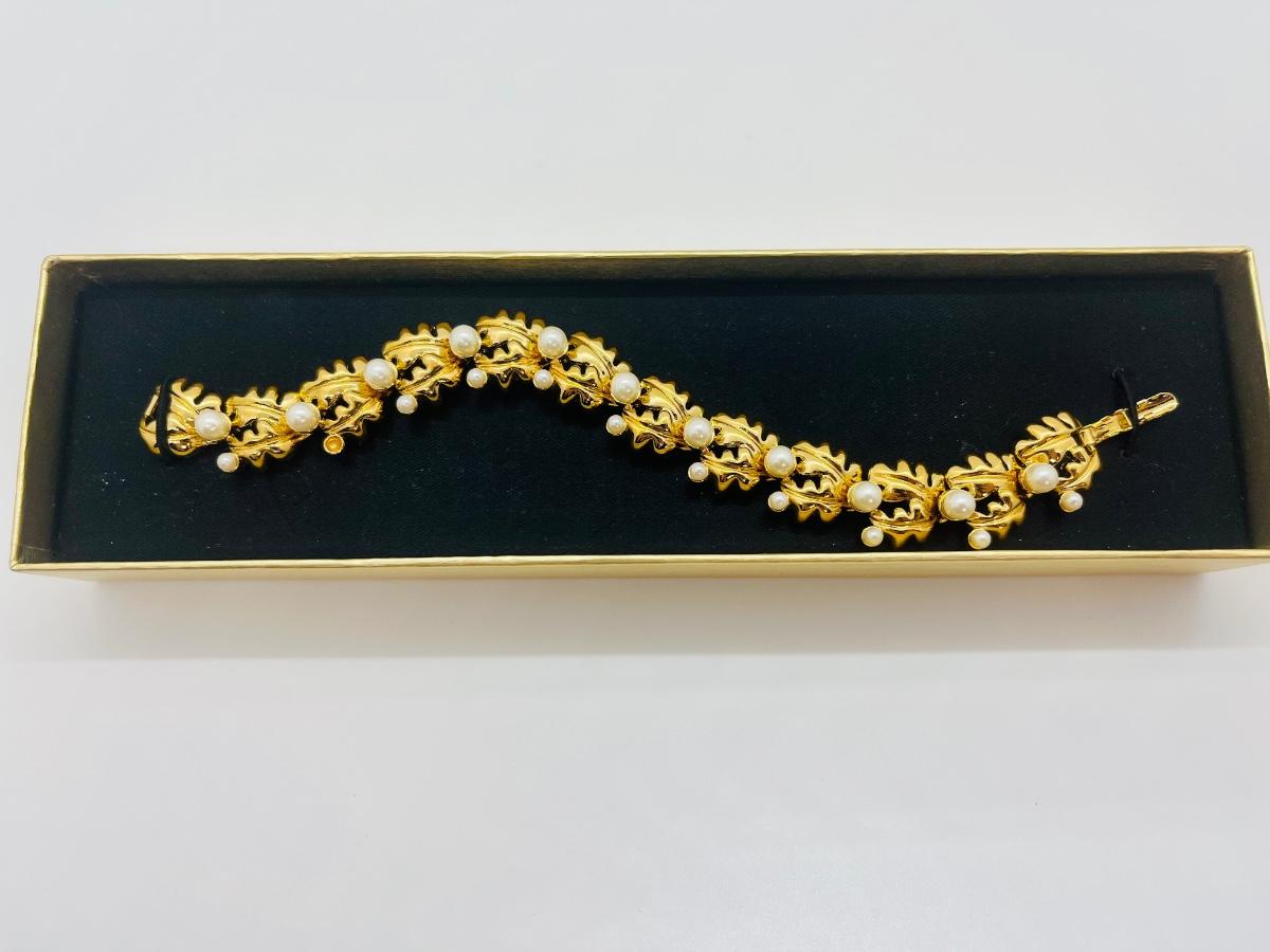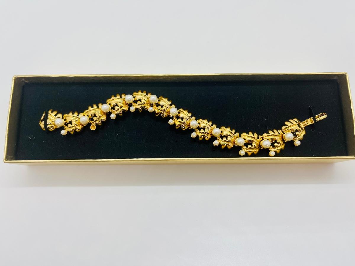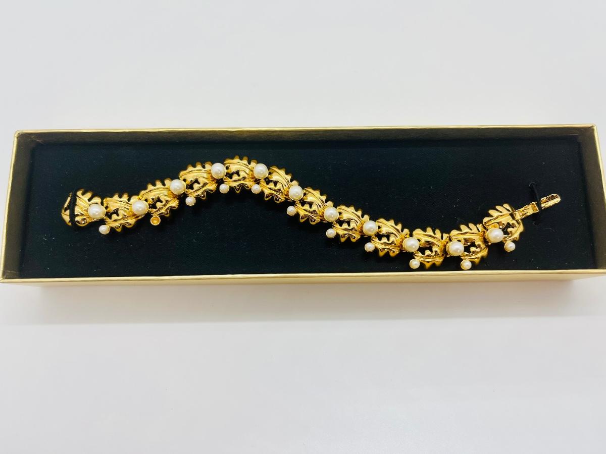 Lot 80: New in Box, Monet Costume Link Bracelet with Faux Pearls