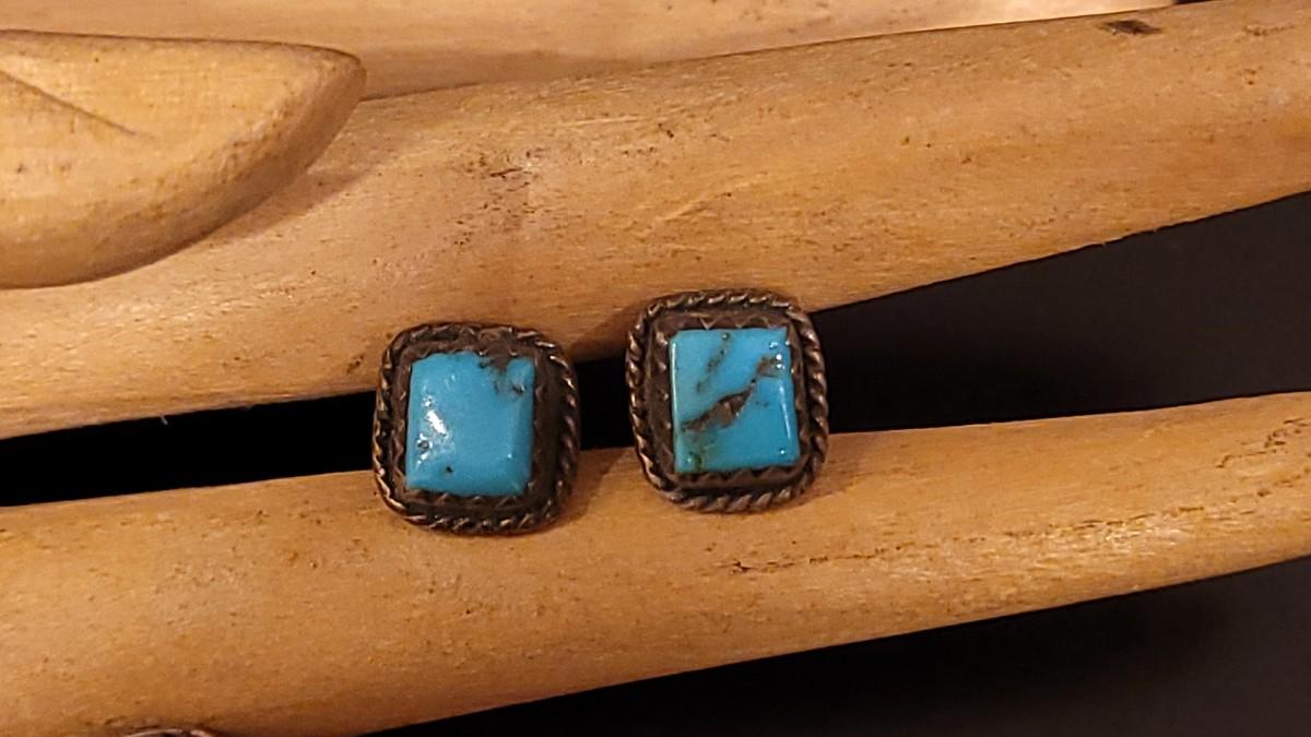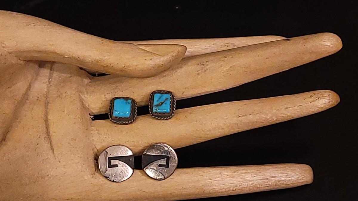 Lot 80: Vintage Native American Turquoise Earrings & Inlay Earrings
