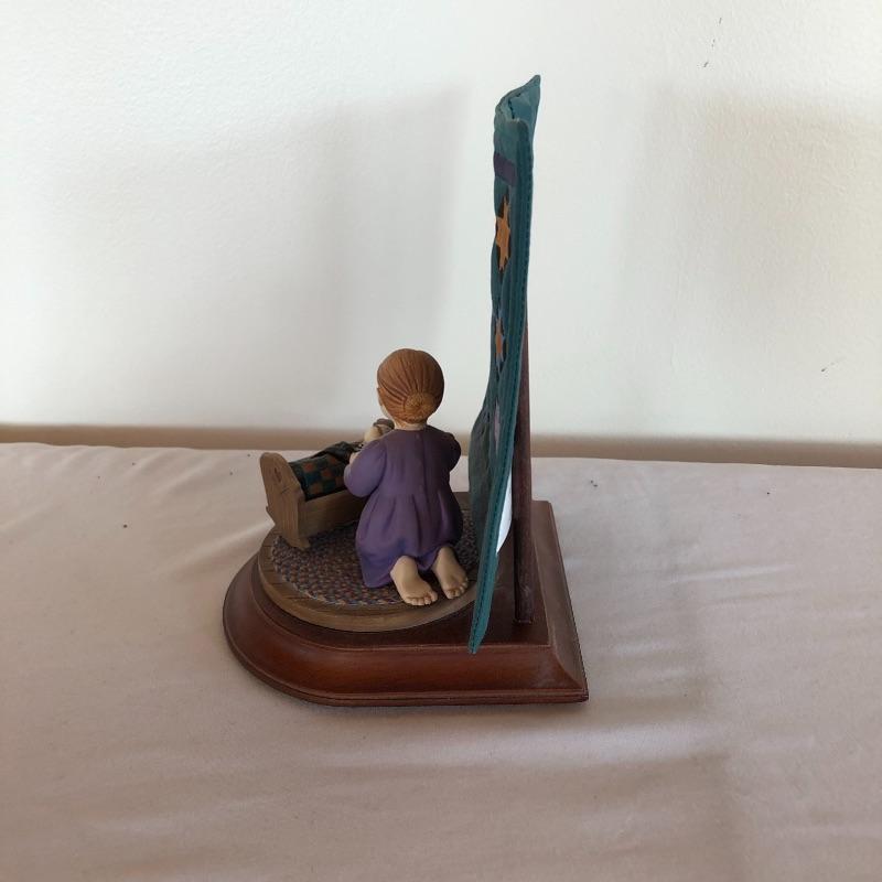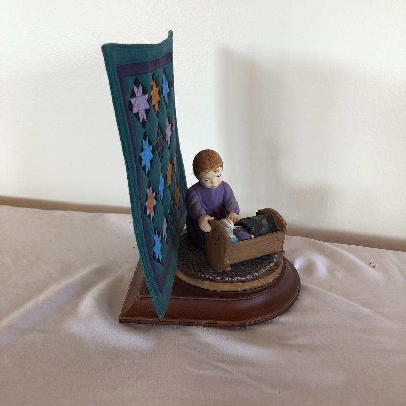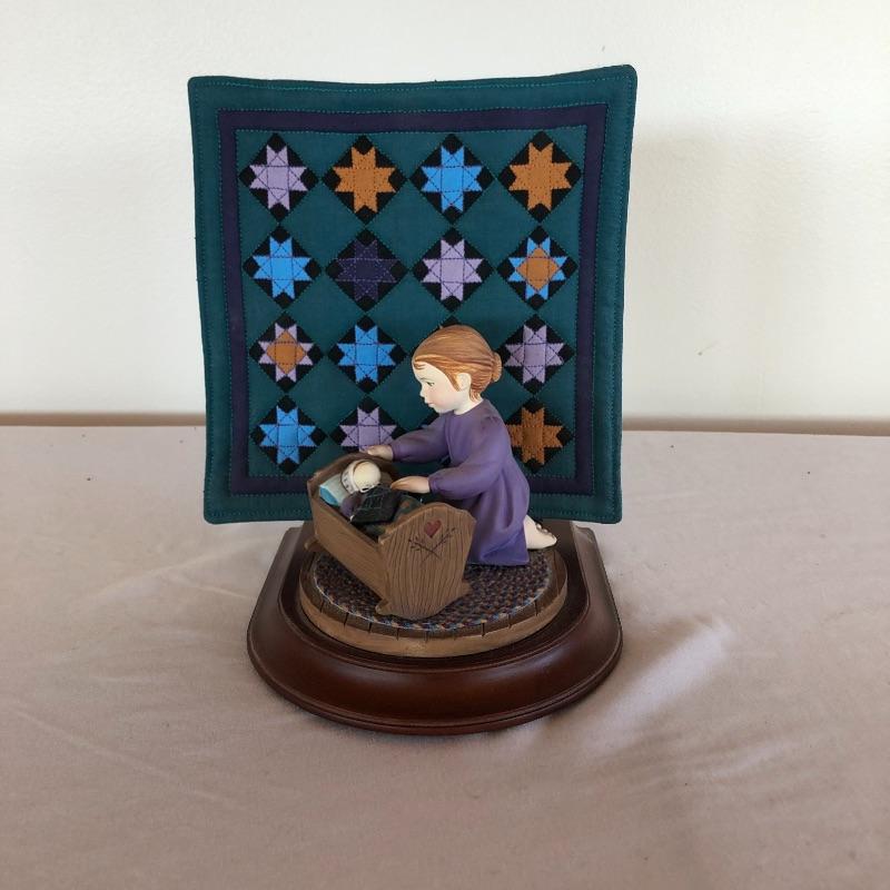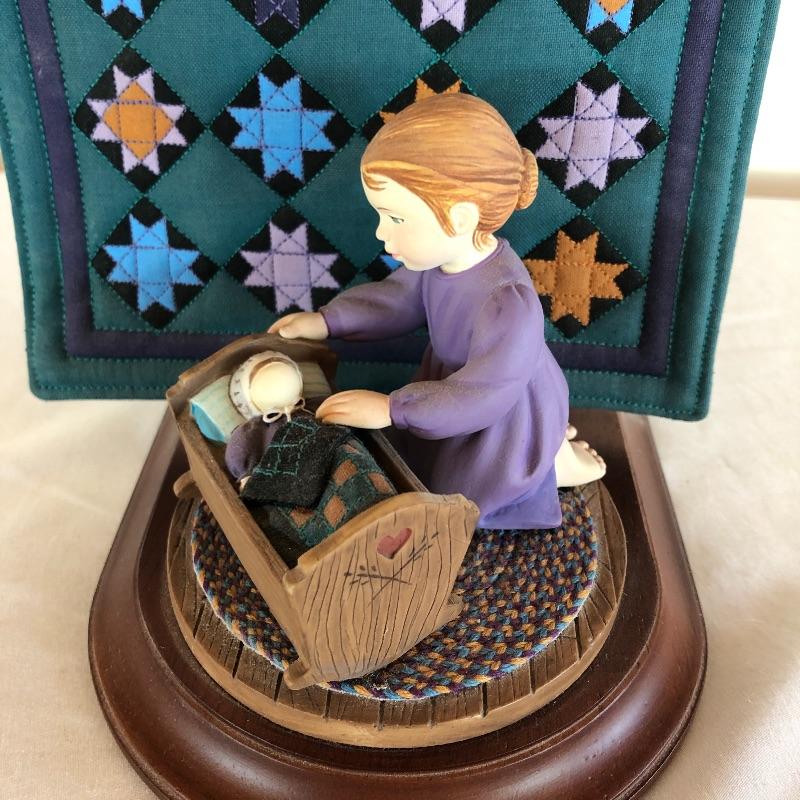 Amish Heritage collection figurine title “Caroline” is hand cast and hand painted and comes with miniature quilt. Figurine with quilt measures 5” x 5.5” x 7”.