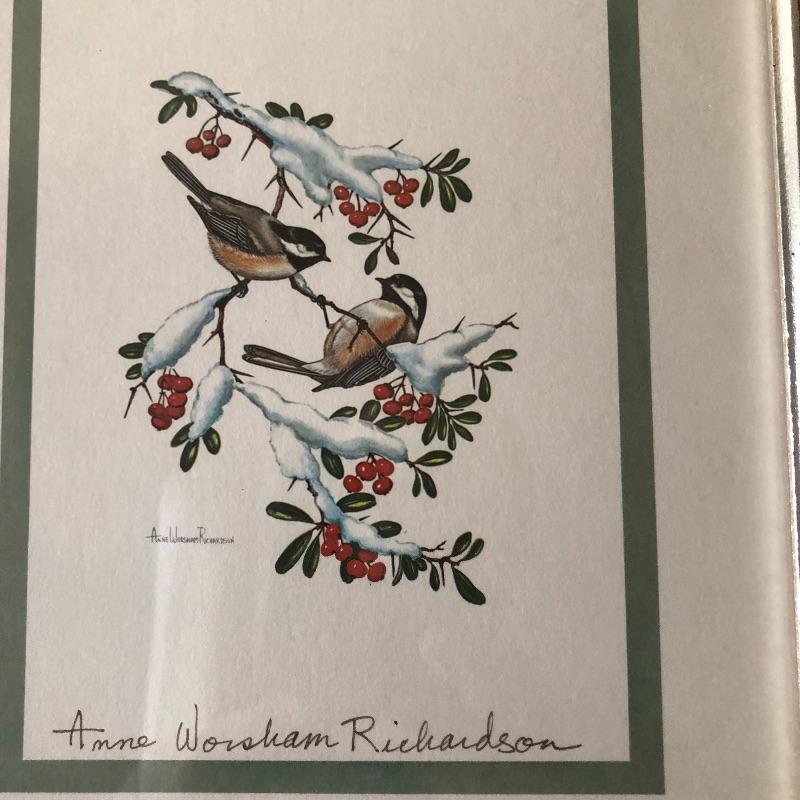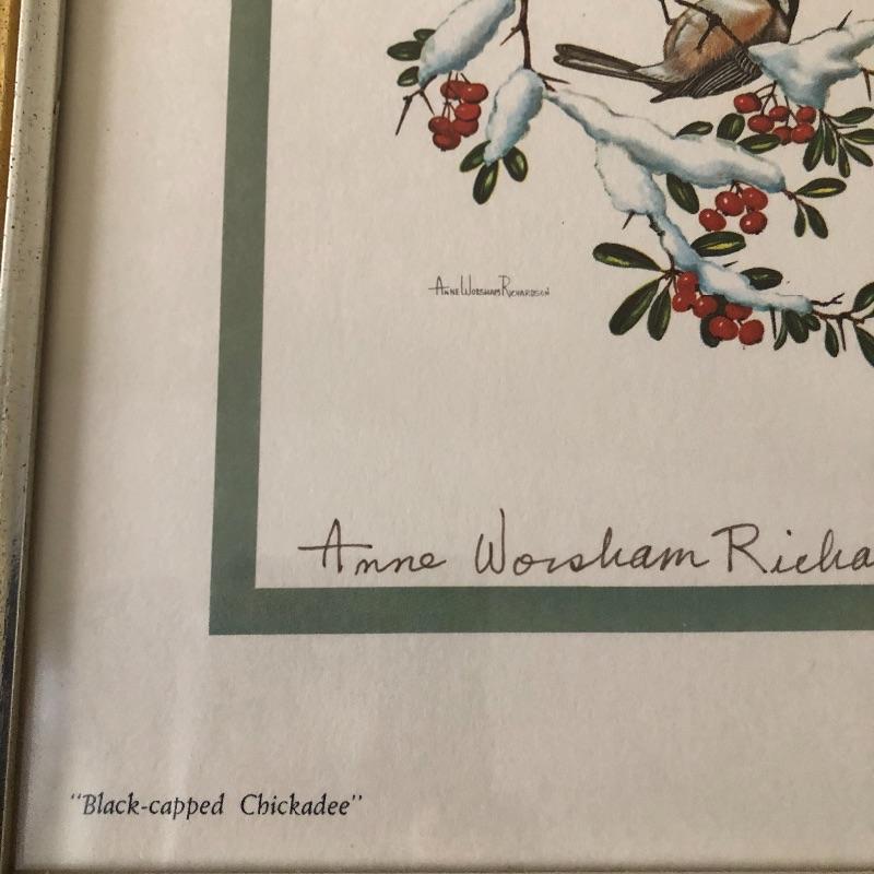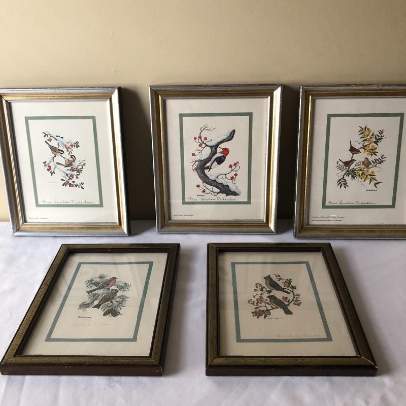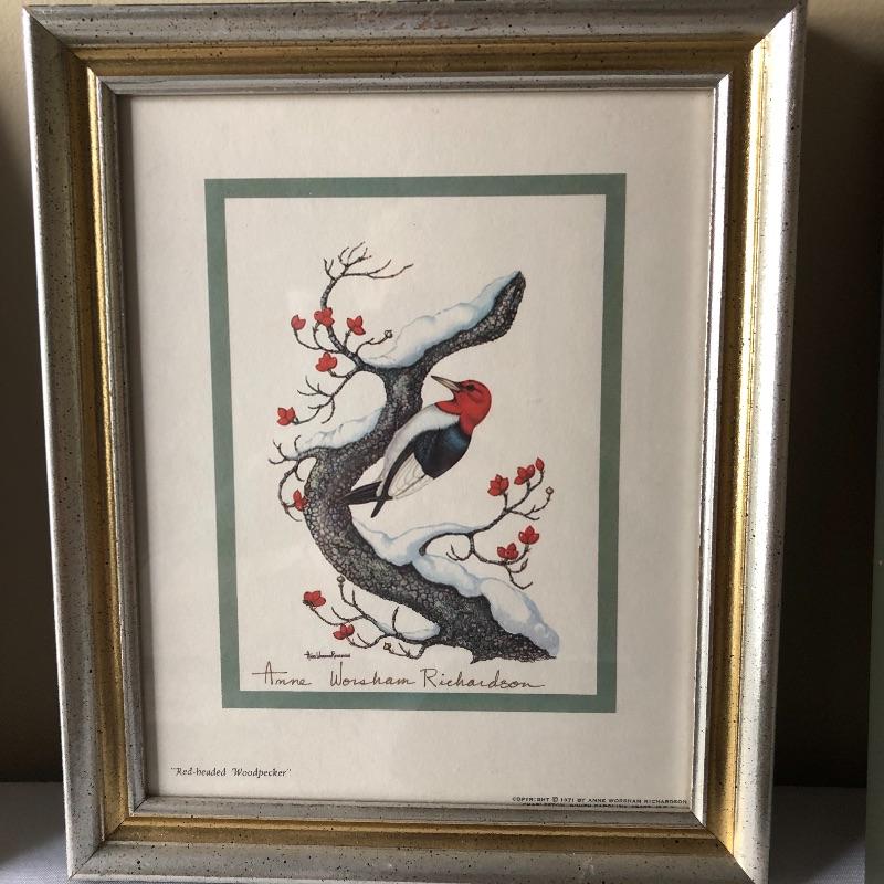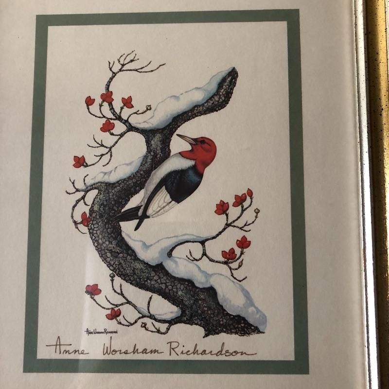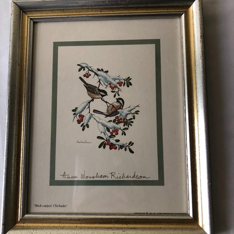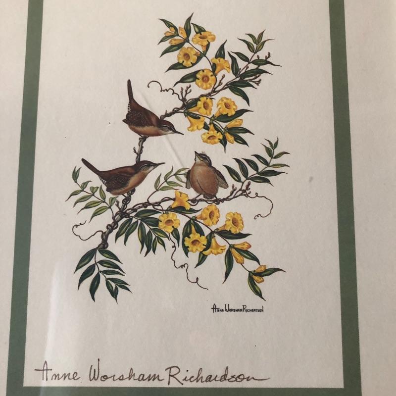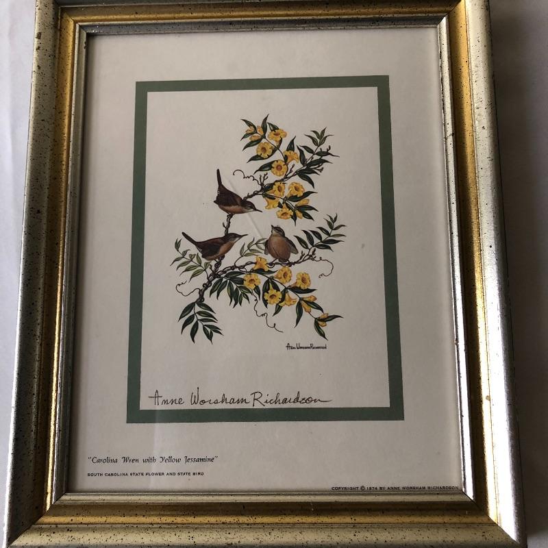 This lot includes five signed prints by Anne Worsham Richardson. The silver and gold frames measure 9 1/2” x approximately 12”. The brown and gold frames measure 9” x 11”. Shipping available.