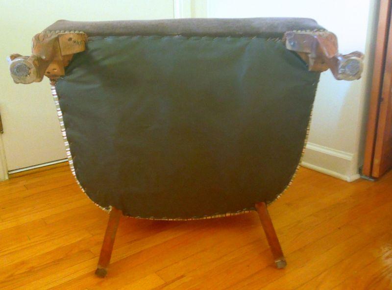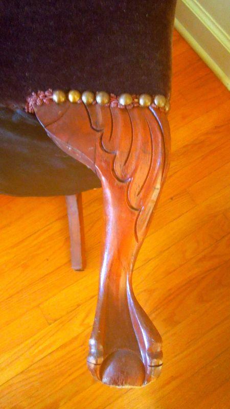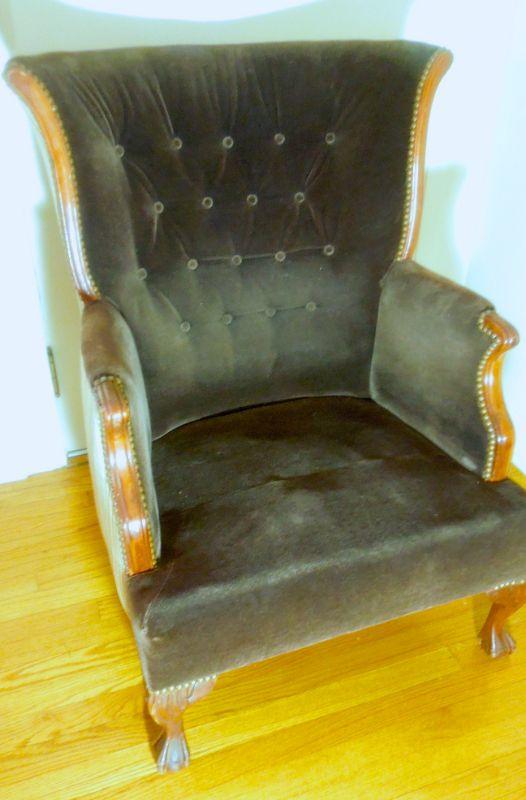 Lot 80: Antique Clawfoot Wingback Chair and Ottoman c. 1950