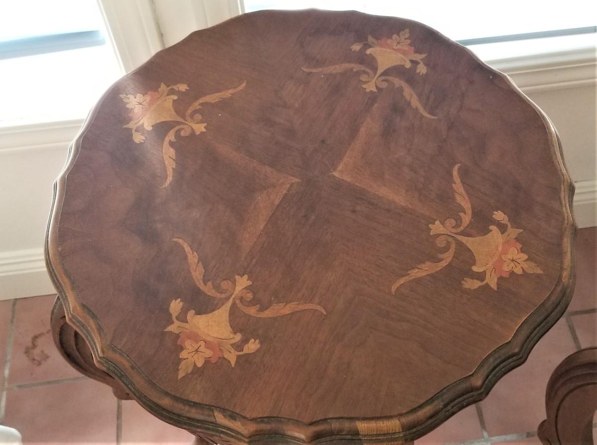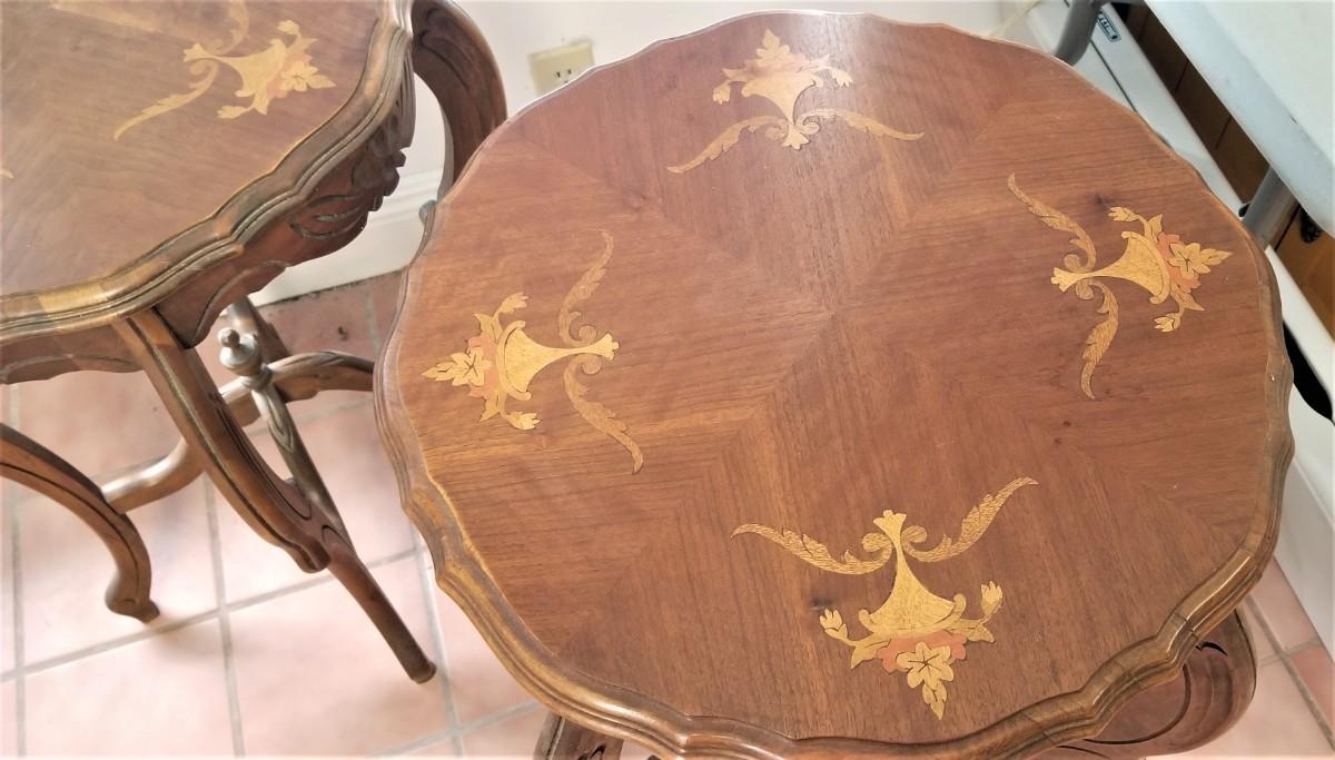 Lot #80 Cute Pair of Antique Inlaid Parlor Tables