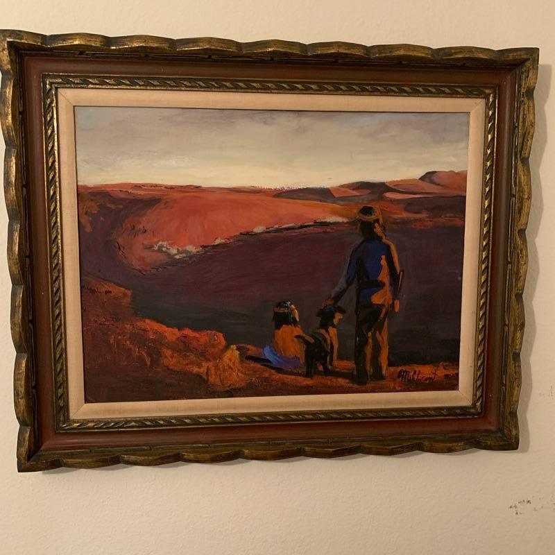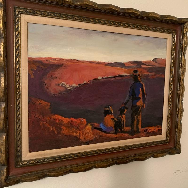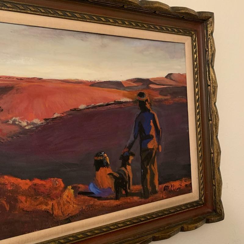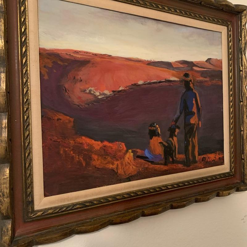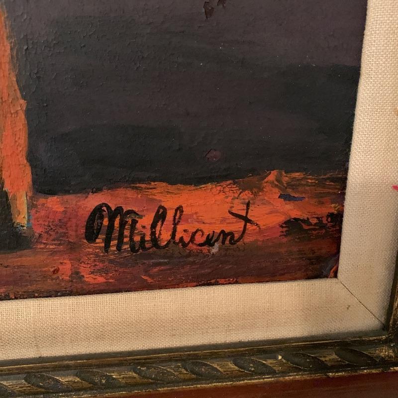 DESERT SCENE OIL ON BOARD BY MILLICENT W 31" H 25"