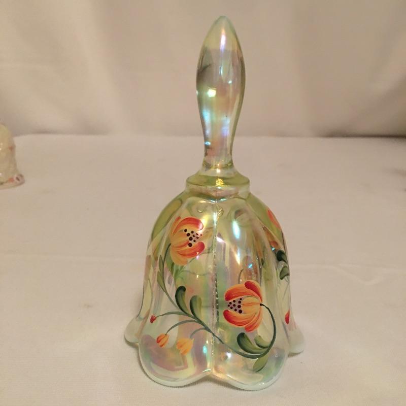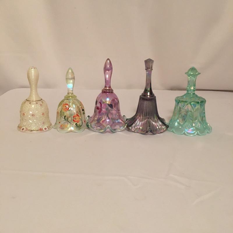 Five striking Fenton carnival glass bells. Summon everyone to the dinner table in style with these beauties.