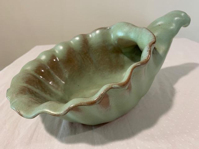 Frankoma Pottery Horn of Plenty, green brown glaze.