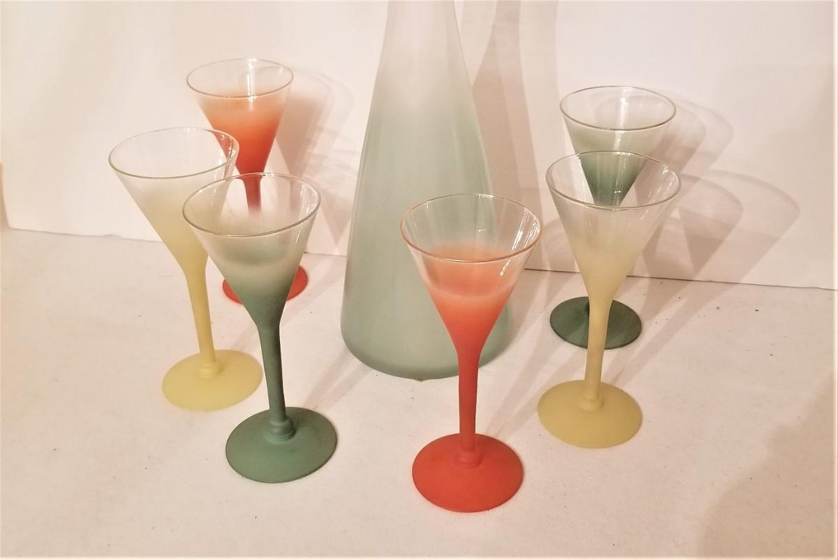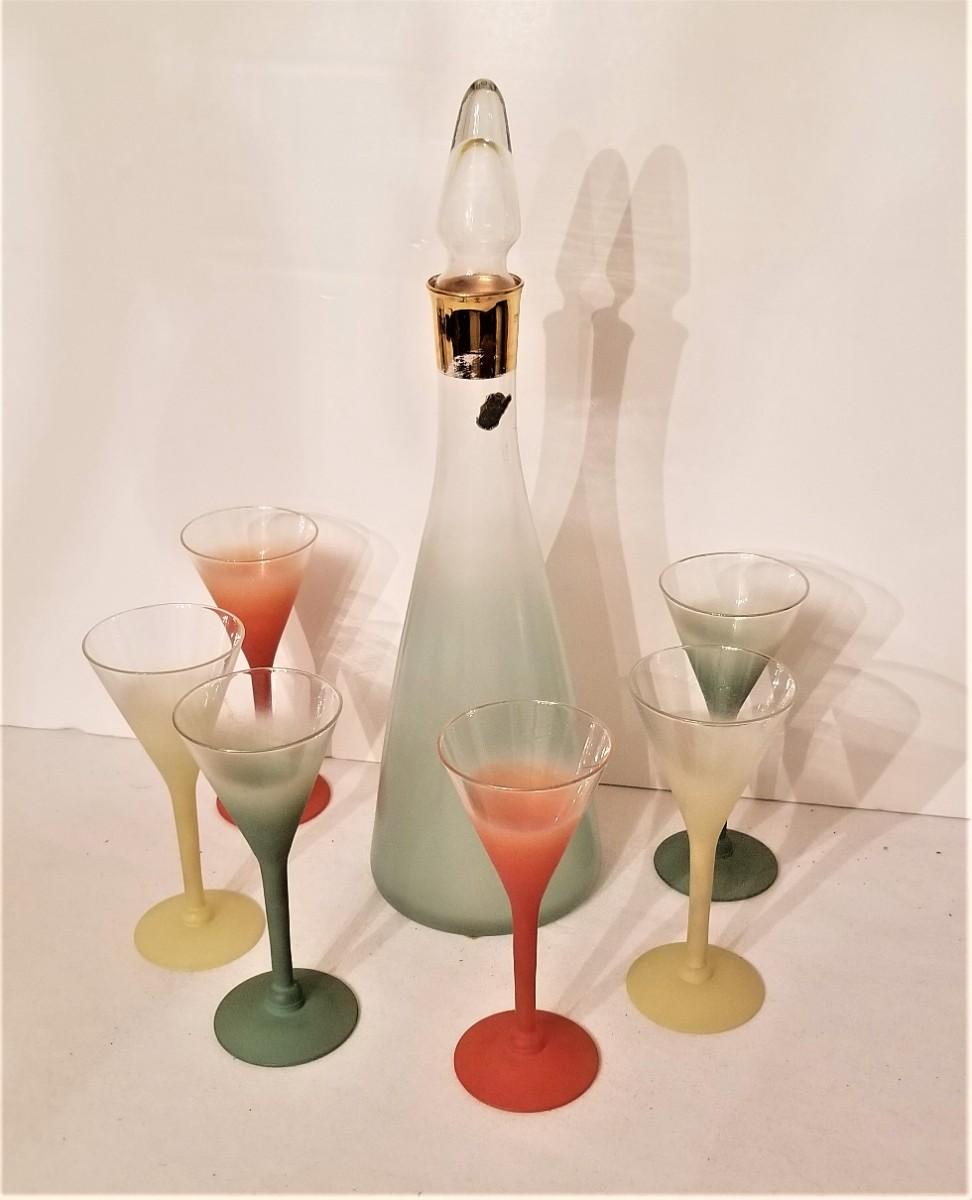 Lot #80  Great MidCentury West Virginia Glass Co. Decanter & Glasses