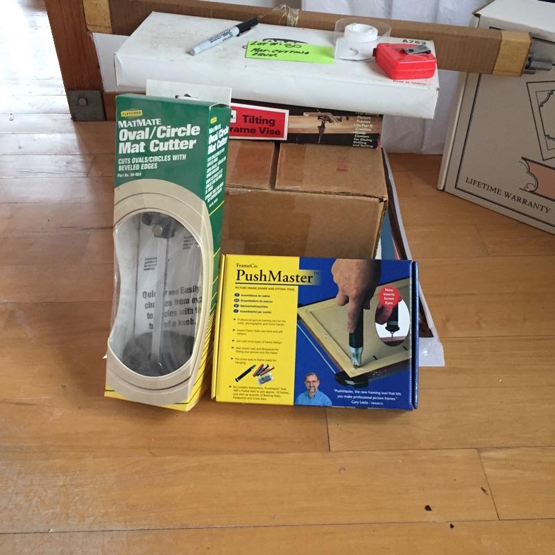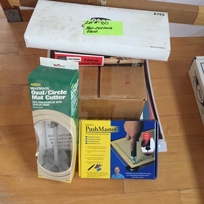 Nice set of Mat cutting tools along with framing tools, vises and more. Make your own photo mats with this great lot. Most have original packaging.