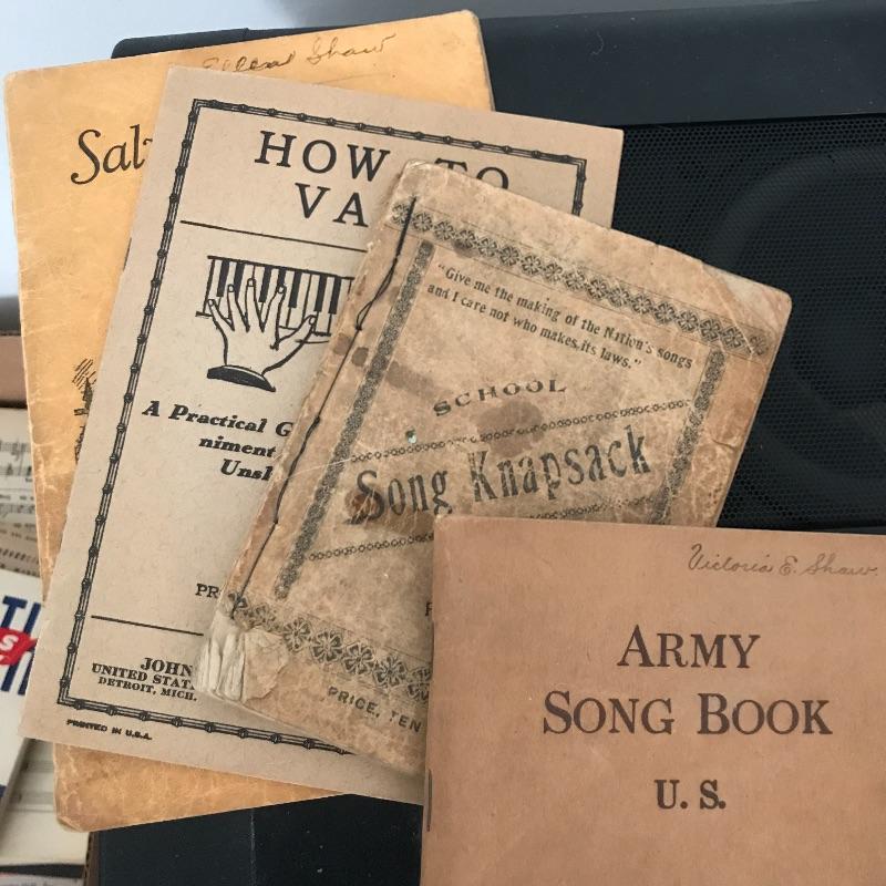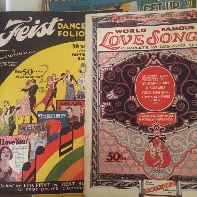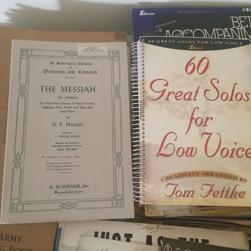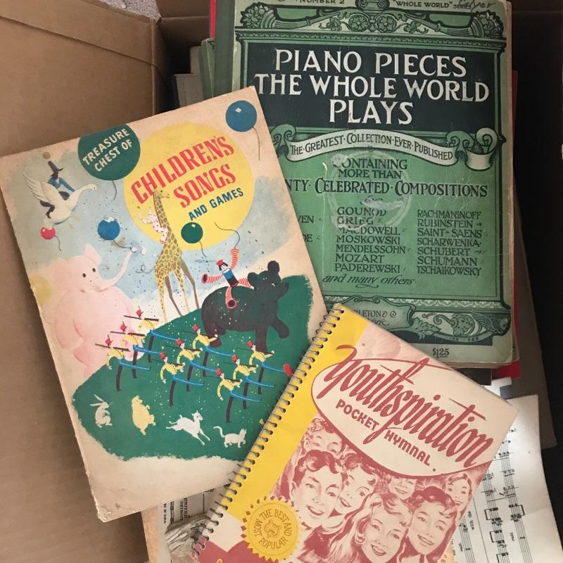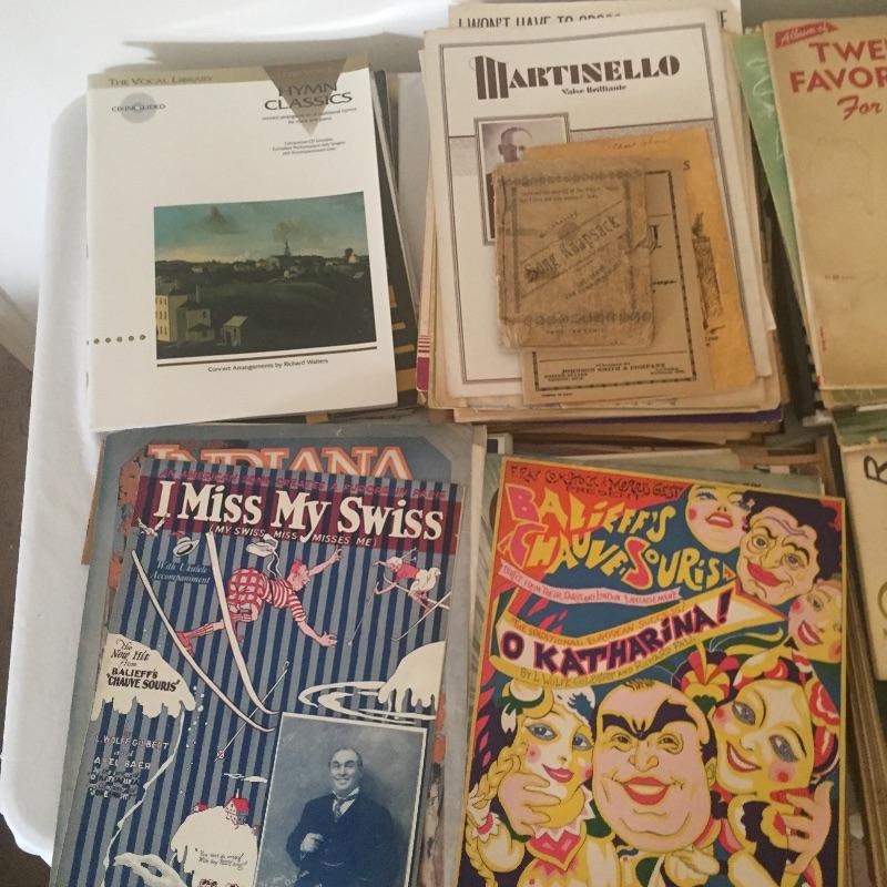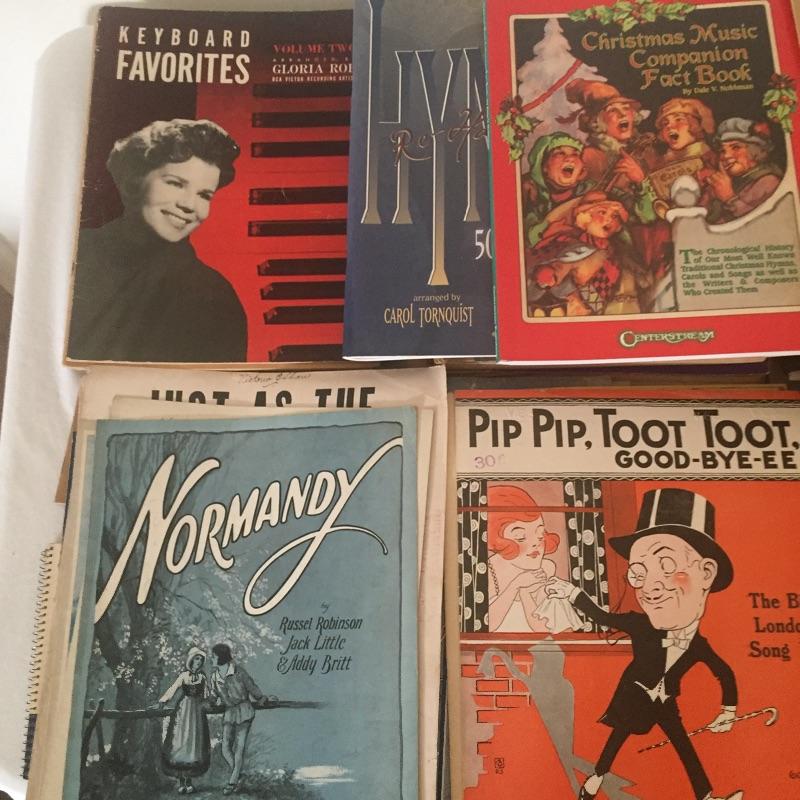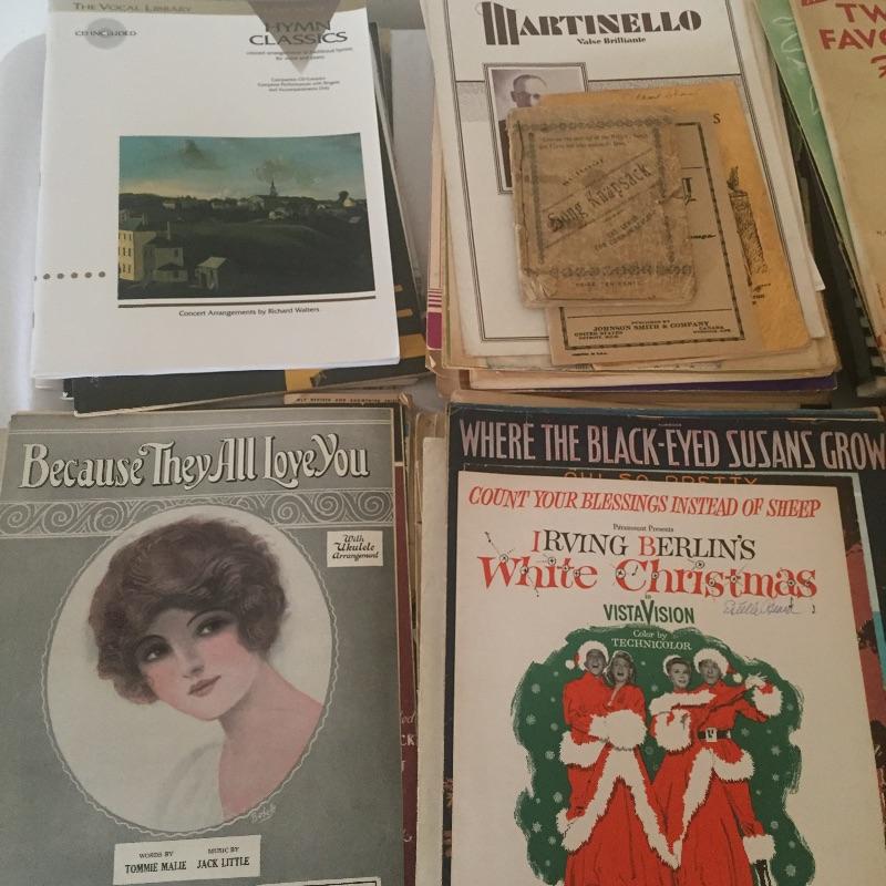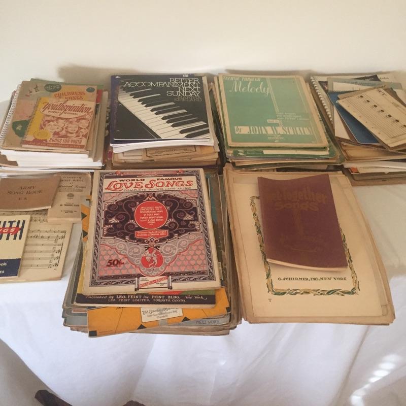 A plethora of music books including White Christmas, Childrebs songs , British folk music , Chattanooga Choo Choo and More.