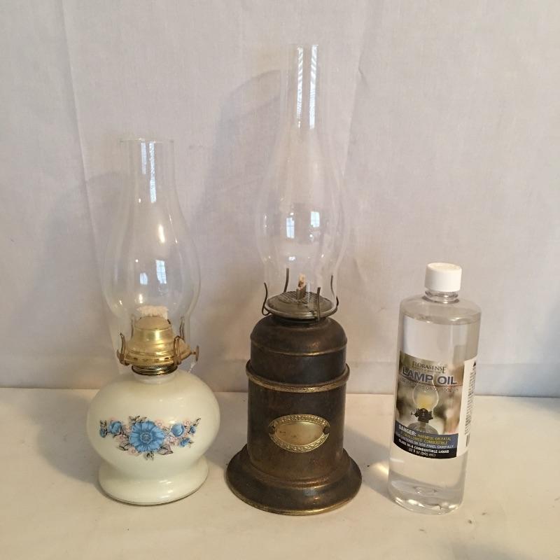 Pair of oil lamps with oil. Light up your life with this pair of oil lamps.
