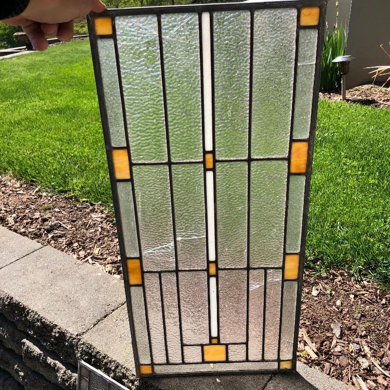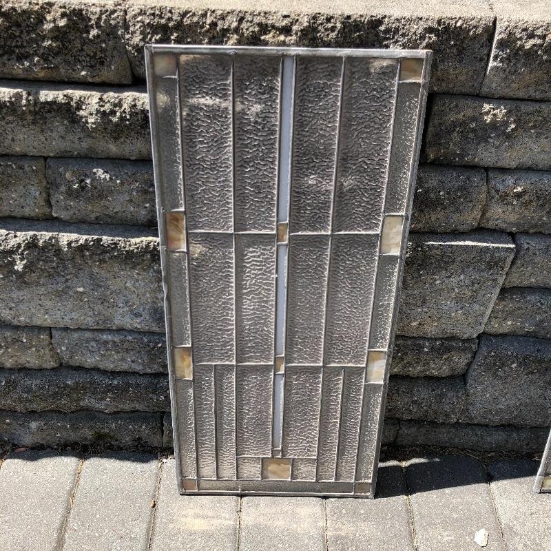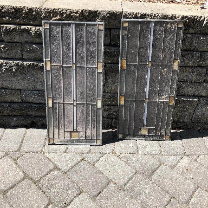 Let the sunshine in with this pair of stained glass windows. One window has five panes that are cracked and the second window has four panes that are cracked and there may be more, see pictures. You can do some time on YouTube and learn how to repair them yourselves. Windows measure 14” x 30”.