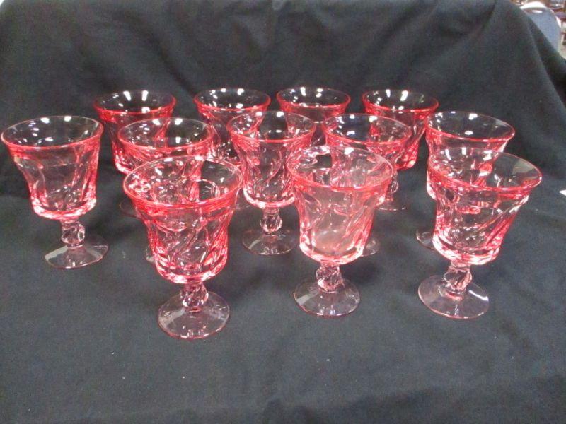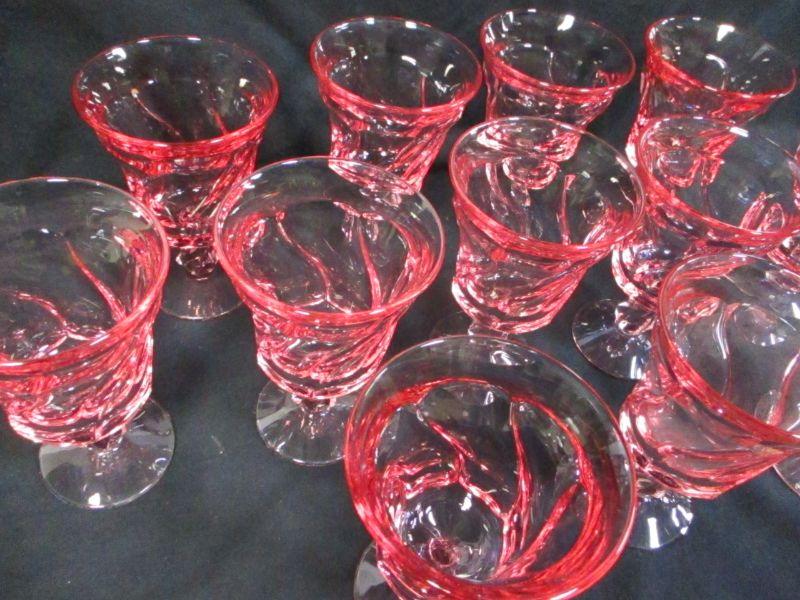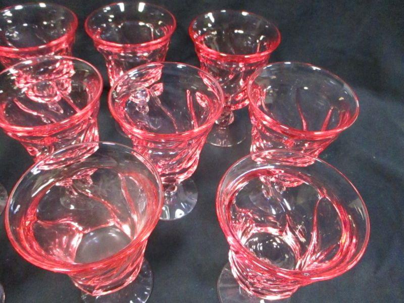 Lot 80 - Pink Crystal Footed Glasses With Swirl Design
