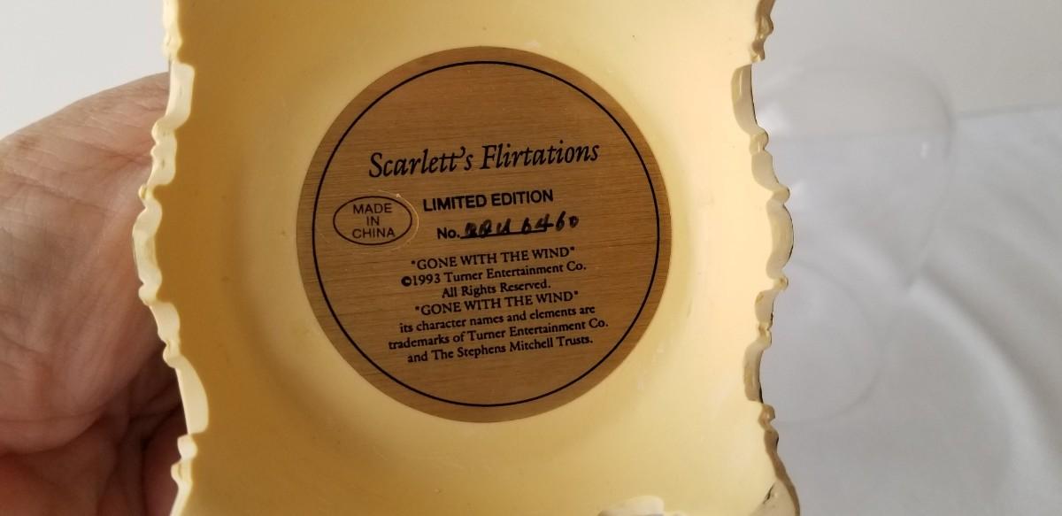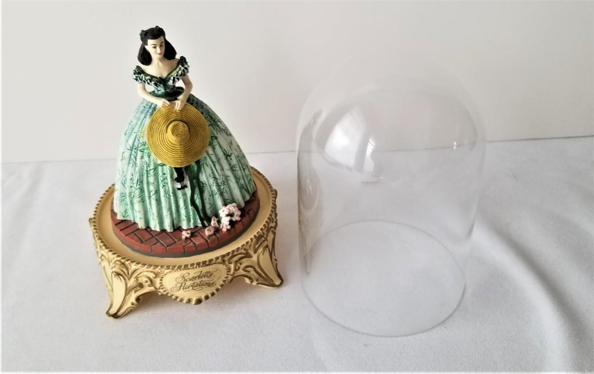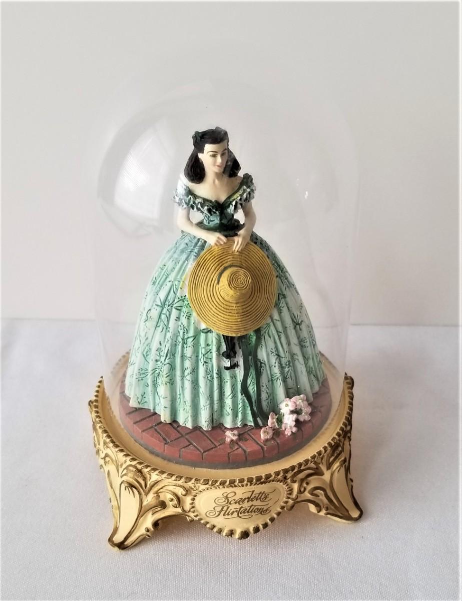 First issue in this long-retired series done by Franklin Mint in 1993 - figurine under glass dome "Scarlett's Flirtations." 5" tall - no box
