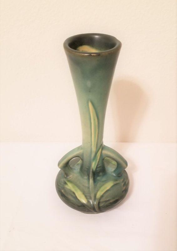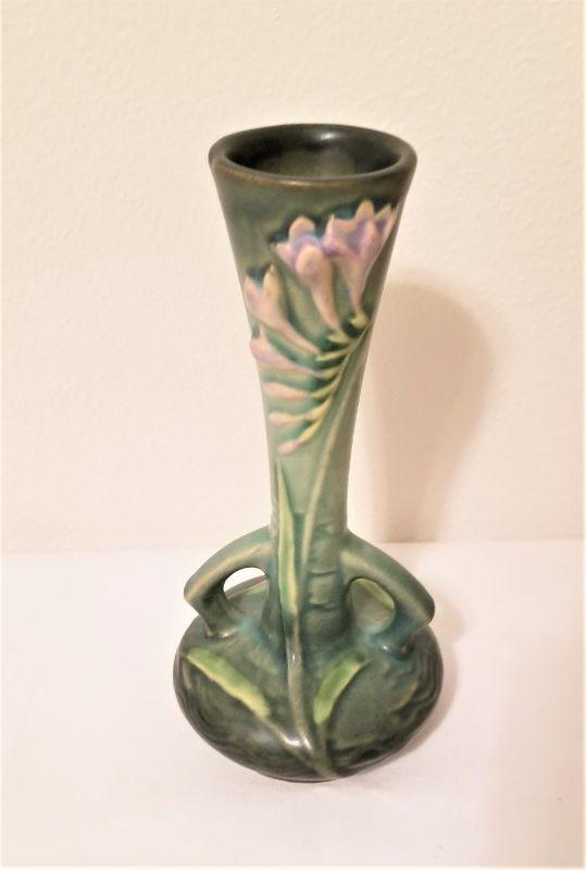 Pretty Roseville Freesia bud vase - a form not seen that often.. Good condition. Style 195-7" - books for between $125 - $150.