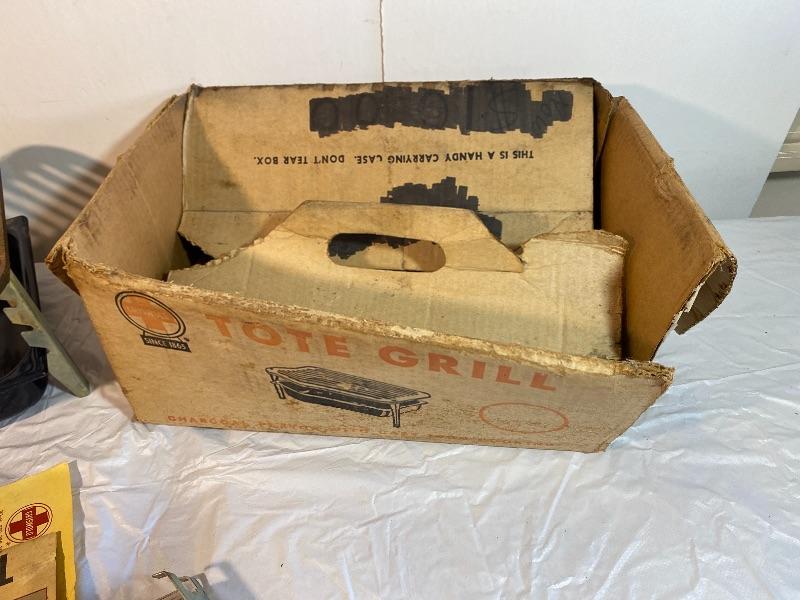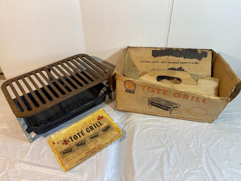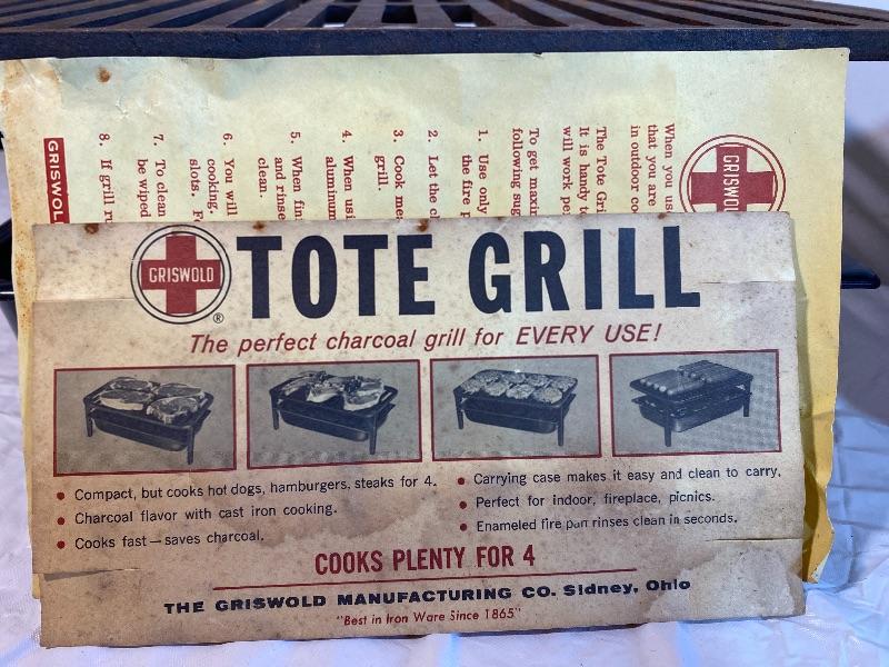 Lot 80 s Vintage Griswold Tote Grill Cast Iron Box Unused