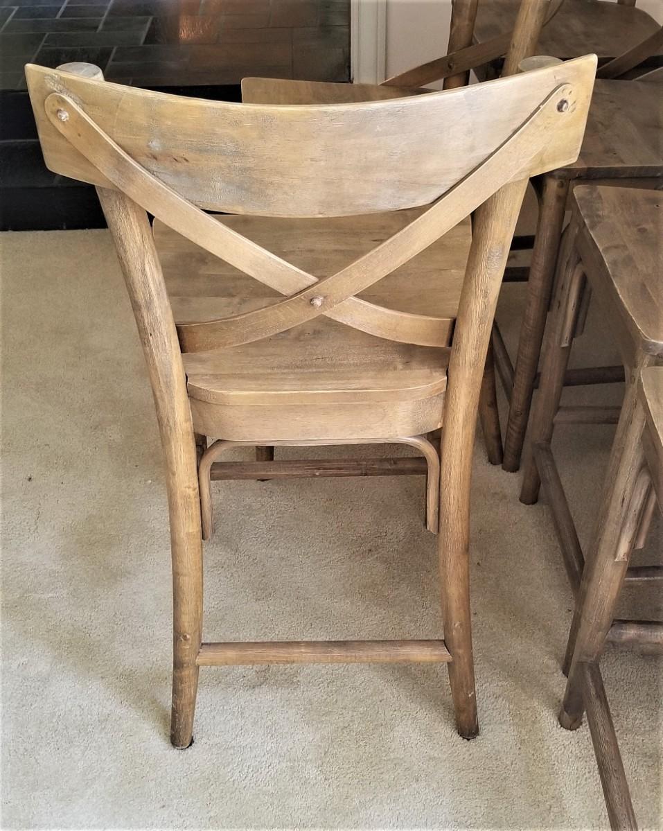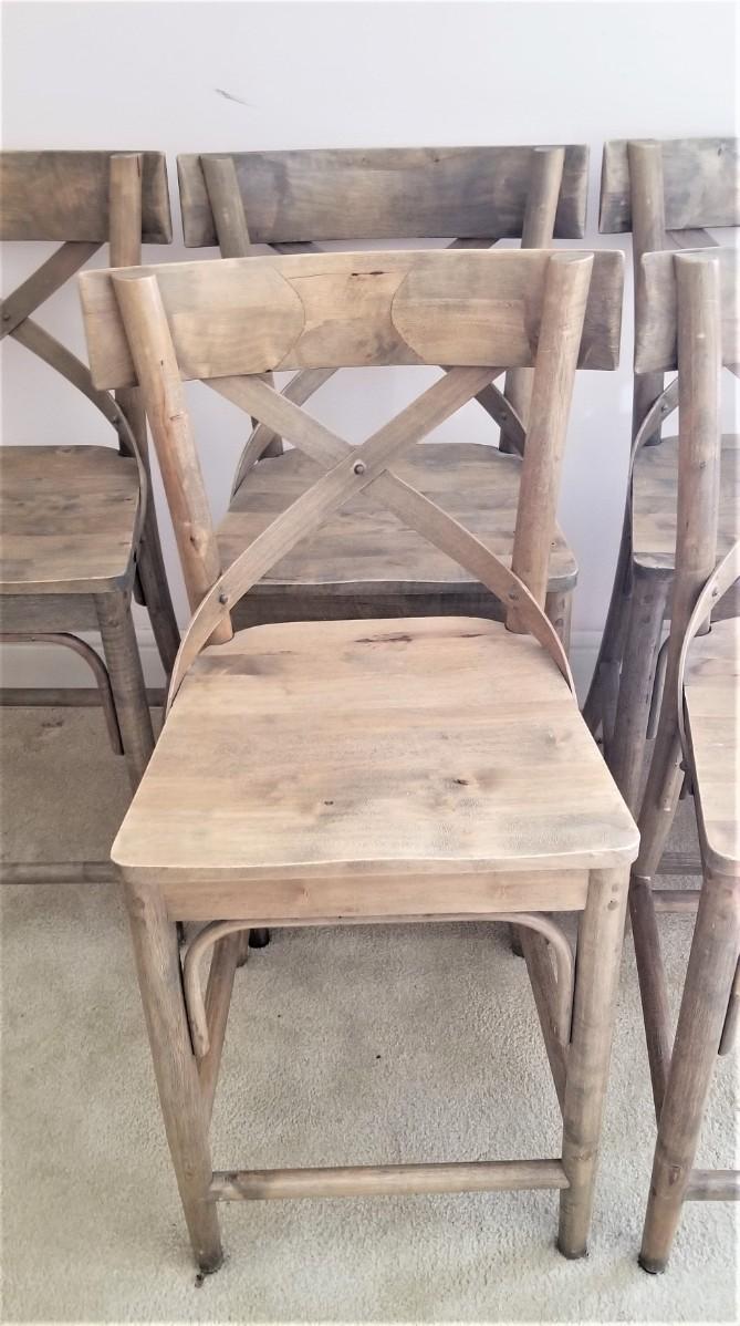 Great bar stools with a contemporary farmhouse look - from World Market. Gently used, one has a small scratch on the seat (as shown). 20" across at the back, each is 37.5" tall.