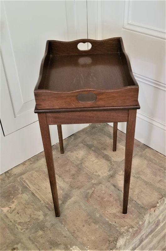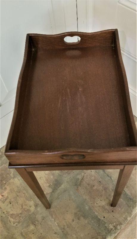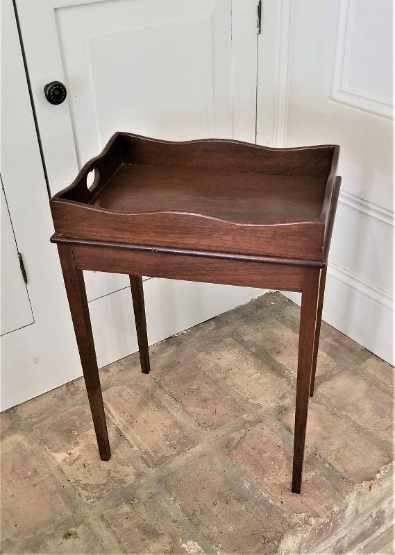Small gallery table on stand - has date 1 Jan 1969 on bottom. Purchased from Wakefield Galleries in Shelbyville, KY. Some wear to the top - 12.5" x 9", 18" tall.