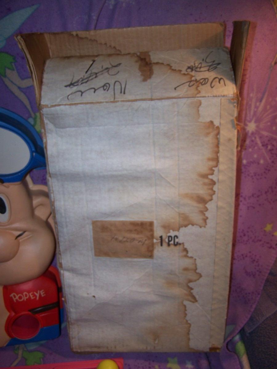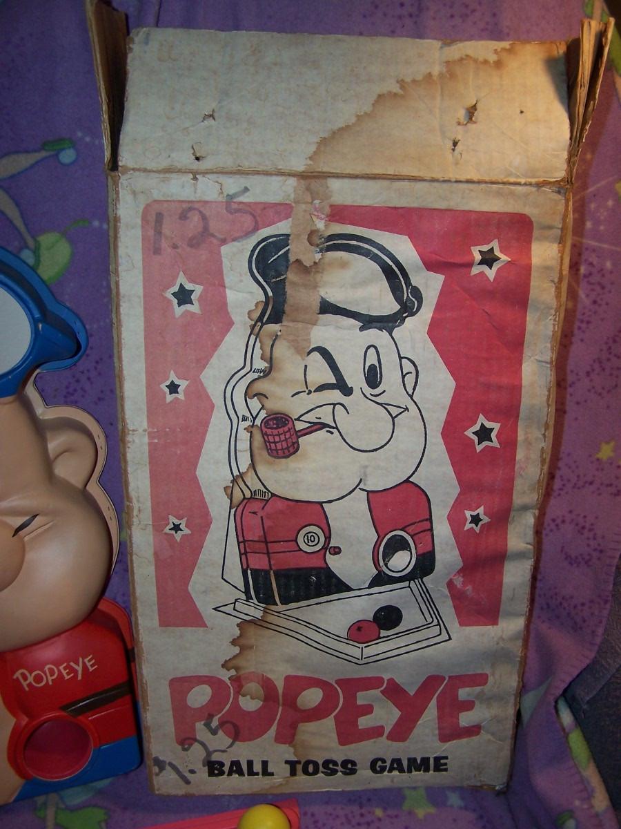 GREAT OLD TOY/GAME!!! POPEYE IS CELLULOID AND IS 20'' TALL.... THE BOX HAS WATER STAINS/DAMAGE...