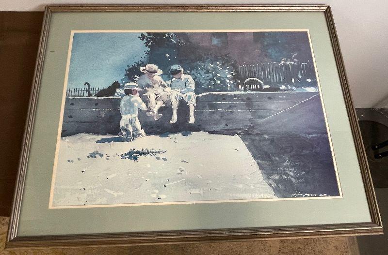 Lot #80 Winslow Homer Print, 3 boys Plus a Cat
