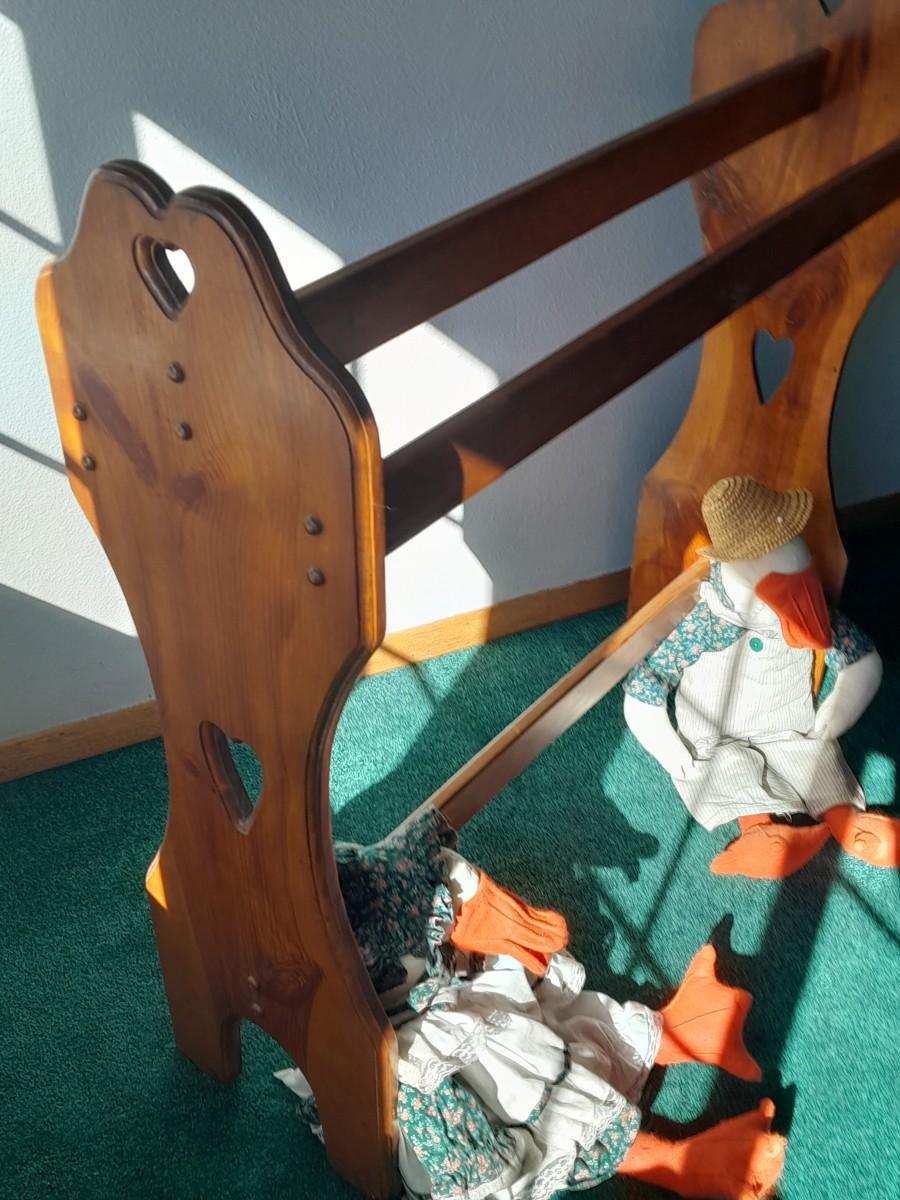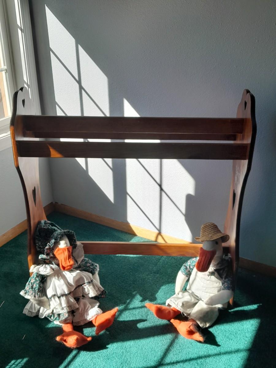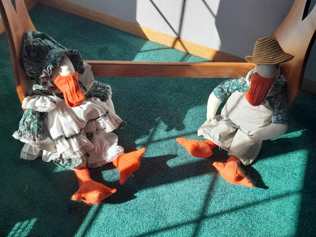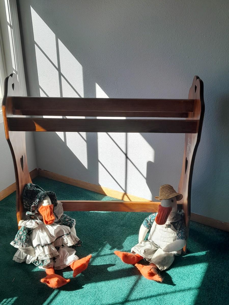 WOODEN QUILT RACK WITH TWO PLUSH GEESE