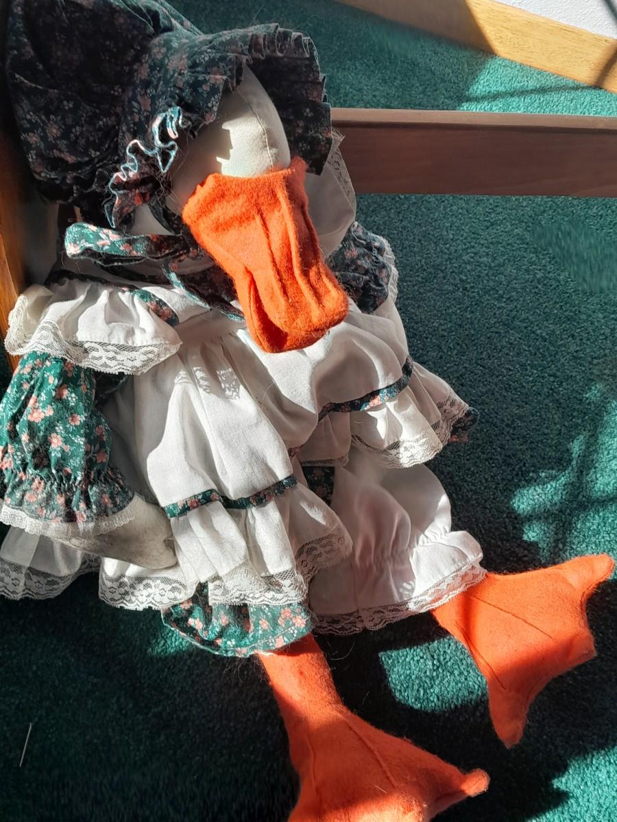 LOT 80 WOODEN QUILT RACK AND PLUSH GEESE