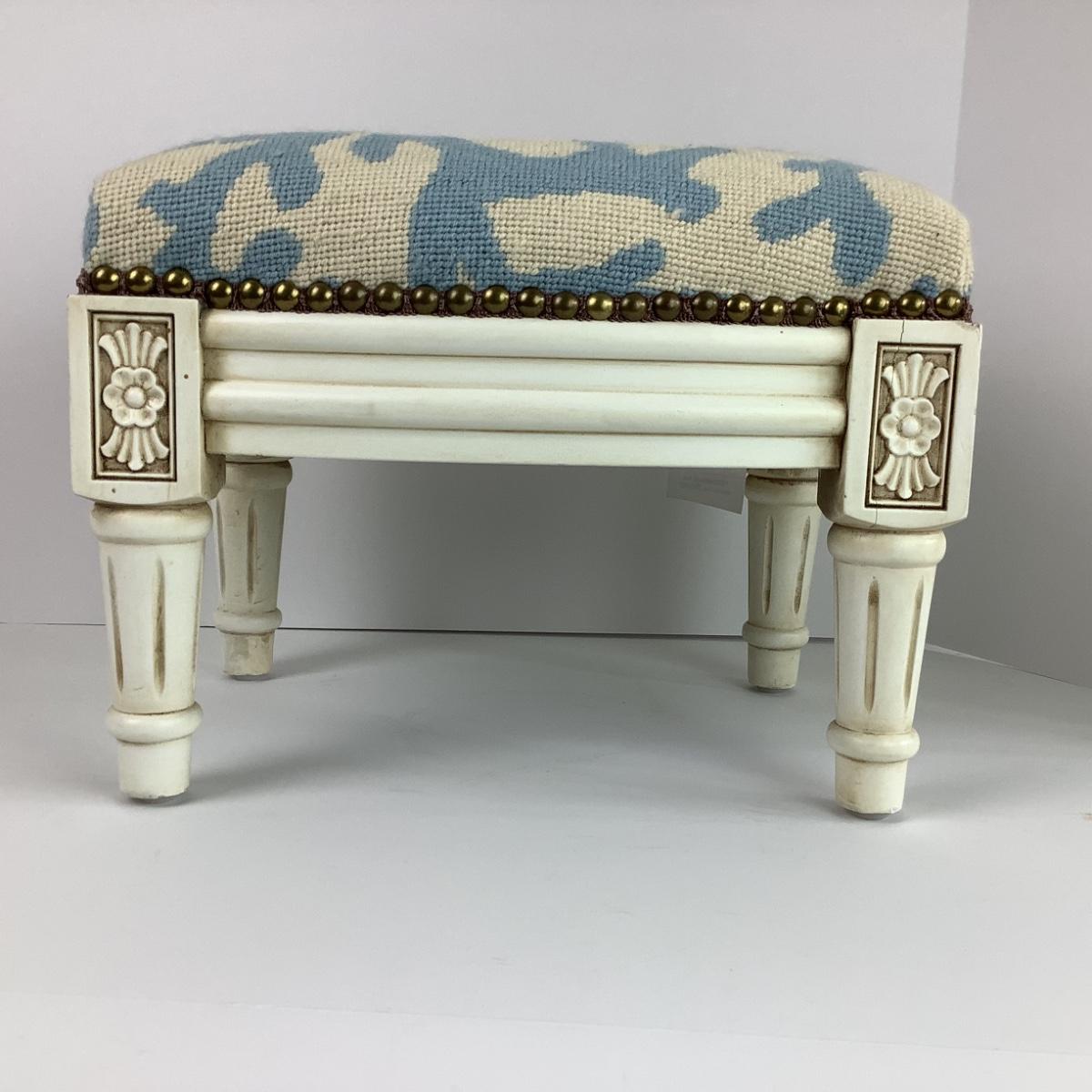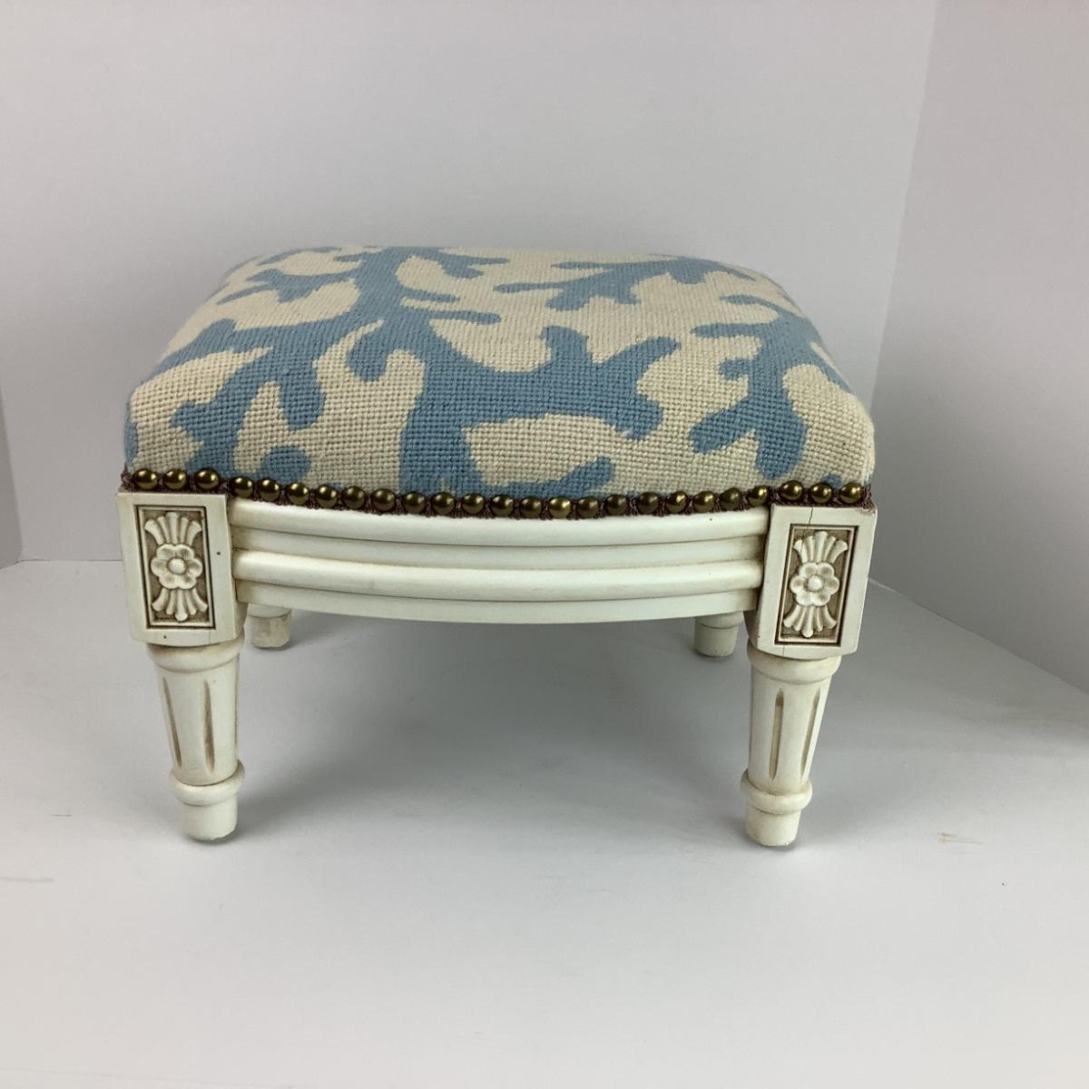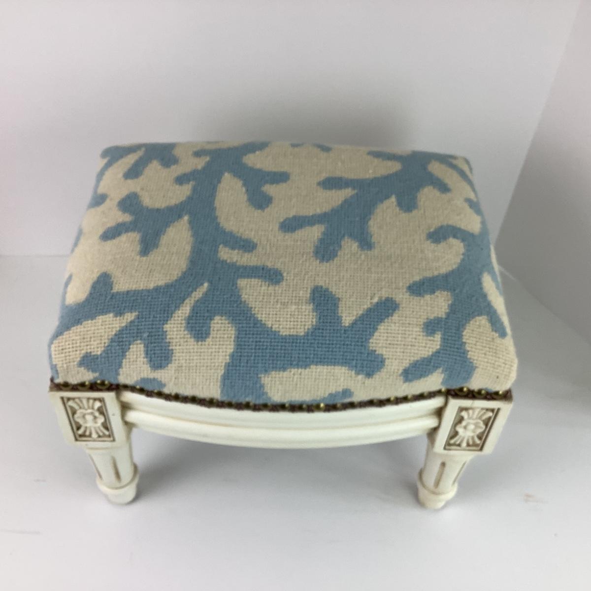 Lot. 8002. Small Blue Coral Needlepoint Footstool