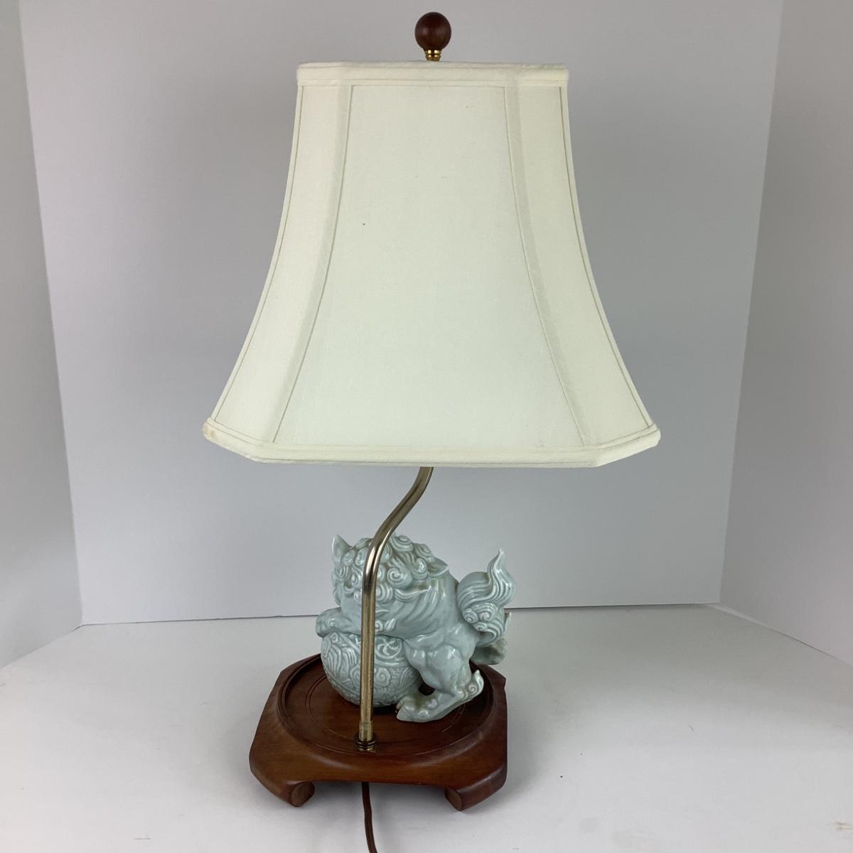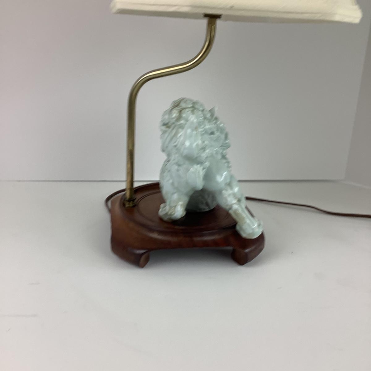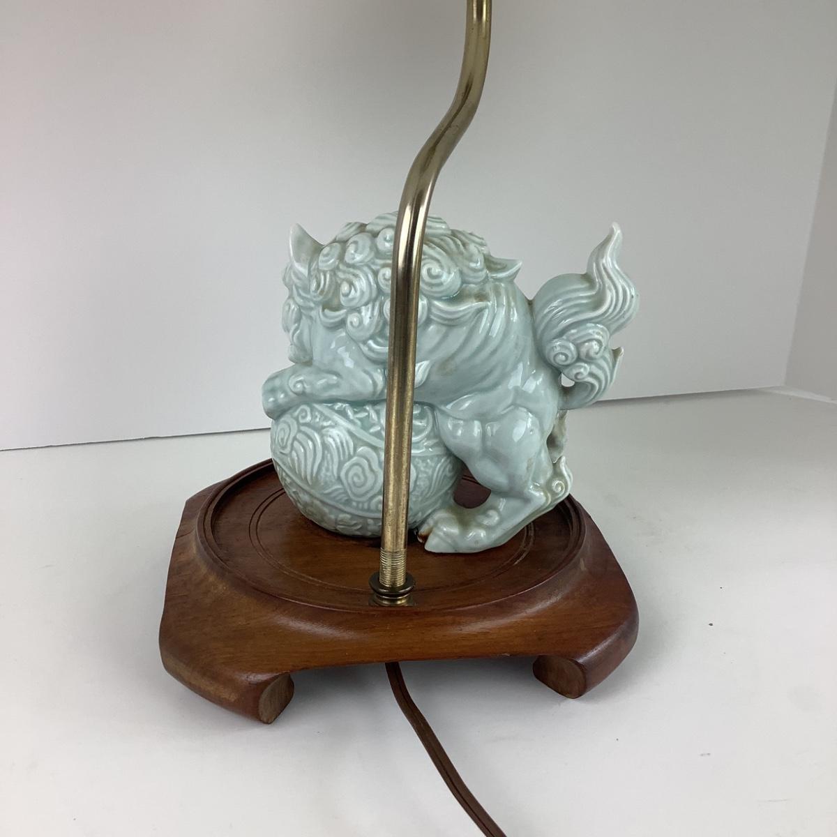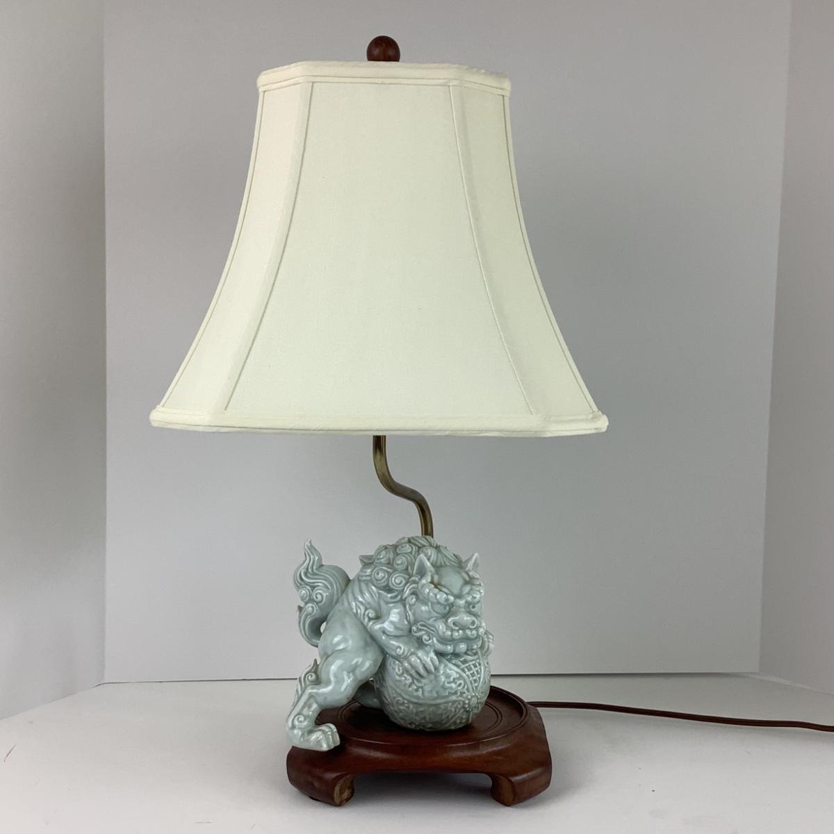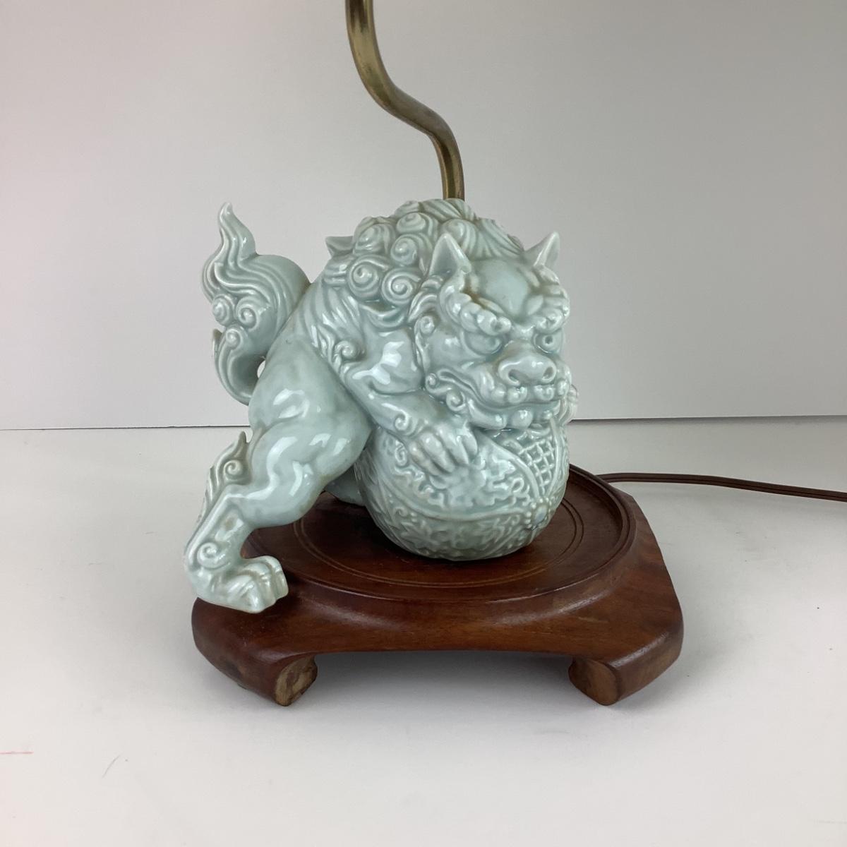 Lot. 8004. Celedon Foo Dog Lamp on Chinese Style Base