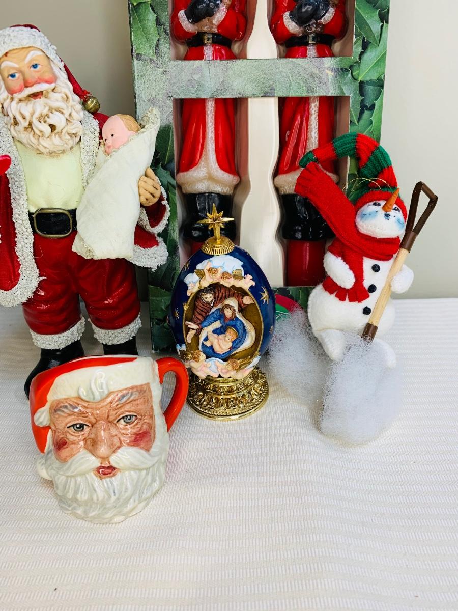 LOT 15R: Royal Doulton Santa Claus Mug, Faberge Nativity Egg, Annalee & More