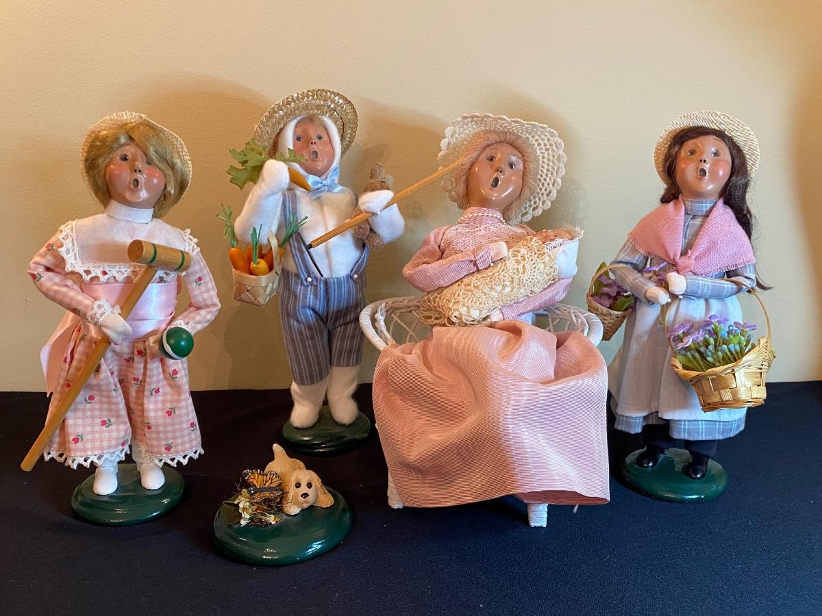 Collection of 4 Spring Beyers Choice Dolls and a playful puppy. Please see all pictures as they are the best representation of the items. The pictures show condition, measurements if taken, and what is included in the lot. Due to the large amount that we photograph and the time frame, we are not always able to take measurements. All items unless noted, are pre-owned and have been used. If you purchased furniture, you must bring help. We do not allow one person to carry large furniture out on their own. Bring help, tools and a truck for the safety of our client’s homes, and your personal safety. Any damages that result to the property including walls, and floors due to moving of the furniture will be charged to the buyer. Company policy. Thank you.