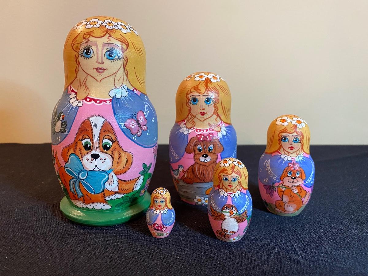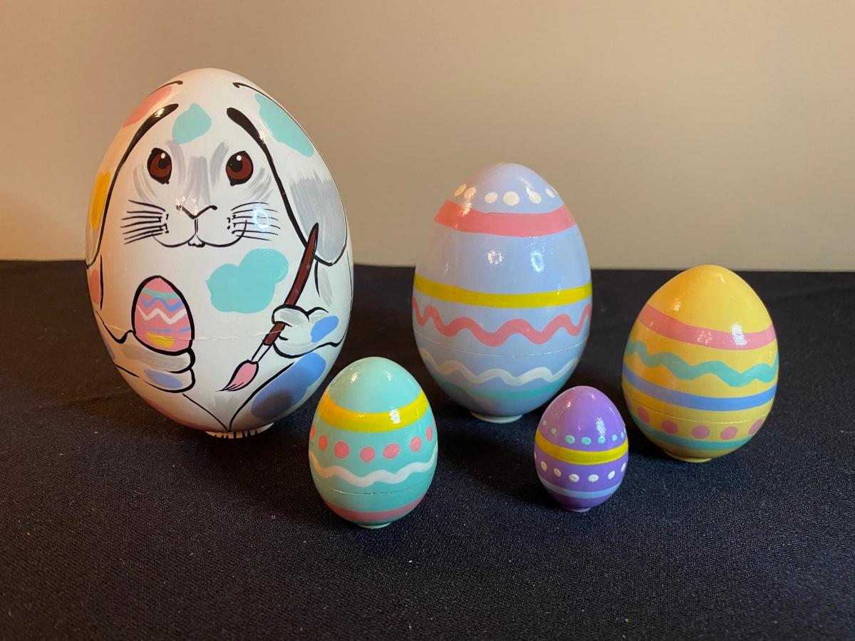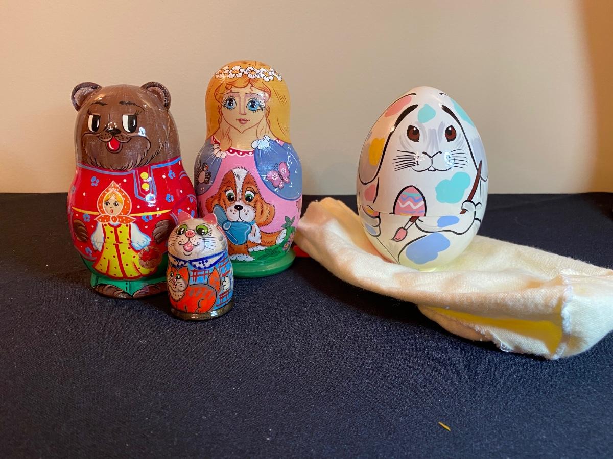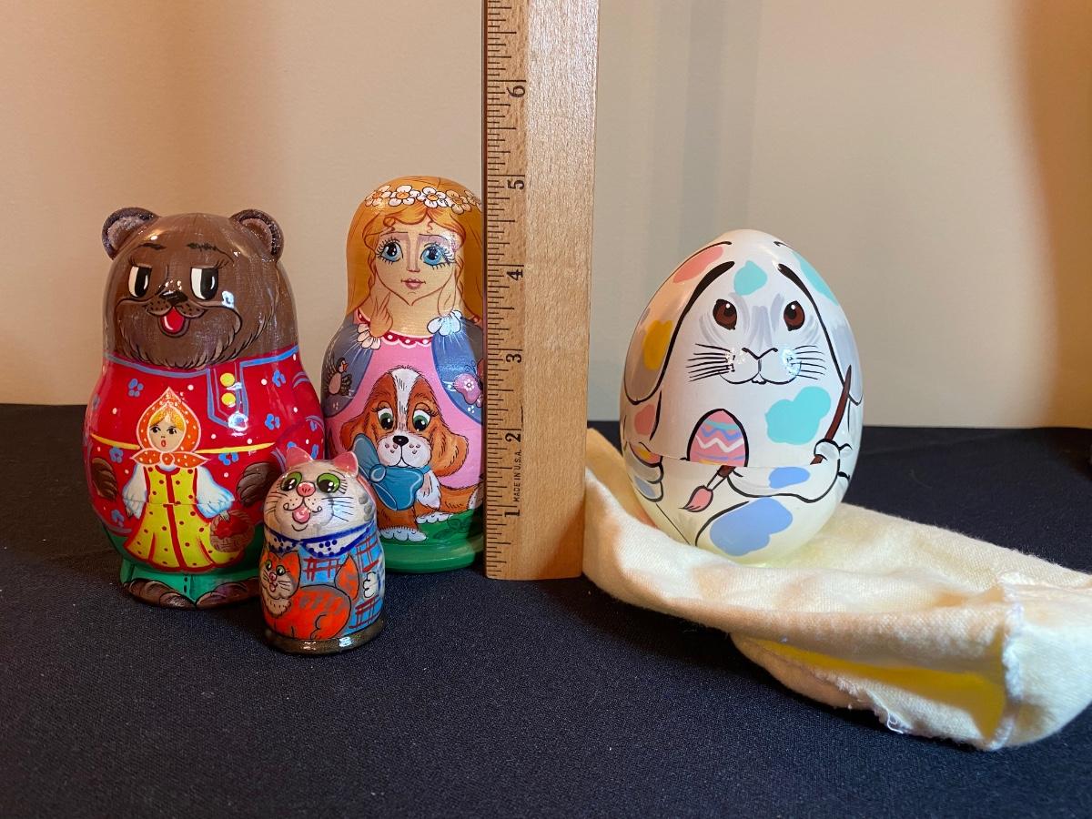 LOT 46C: Wooden Storybook Nesting Dolls &  Easter Bunny Nesting Eggs