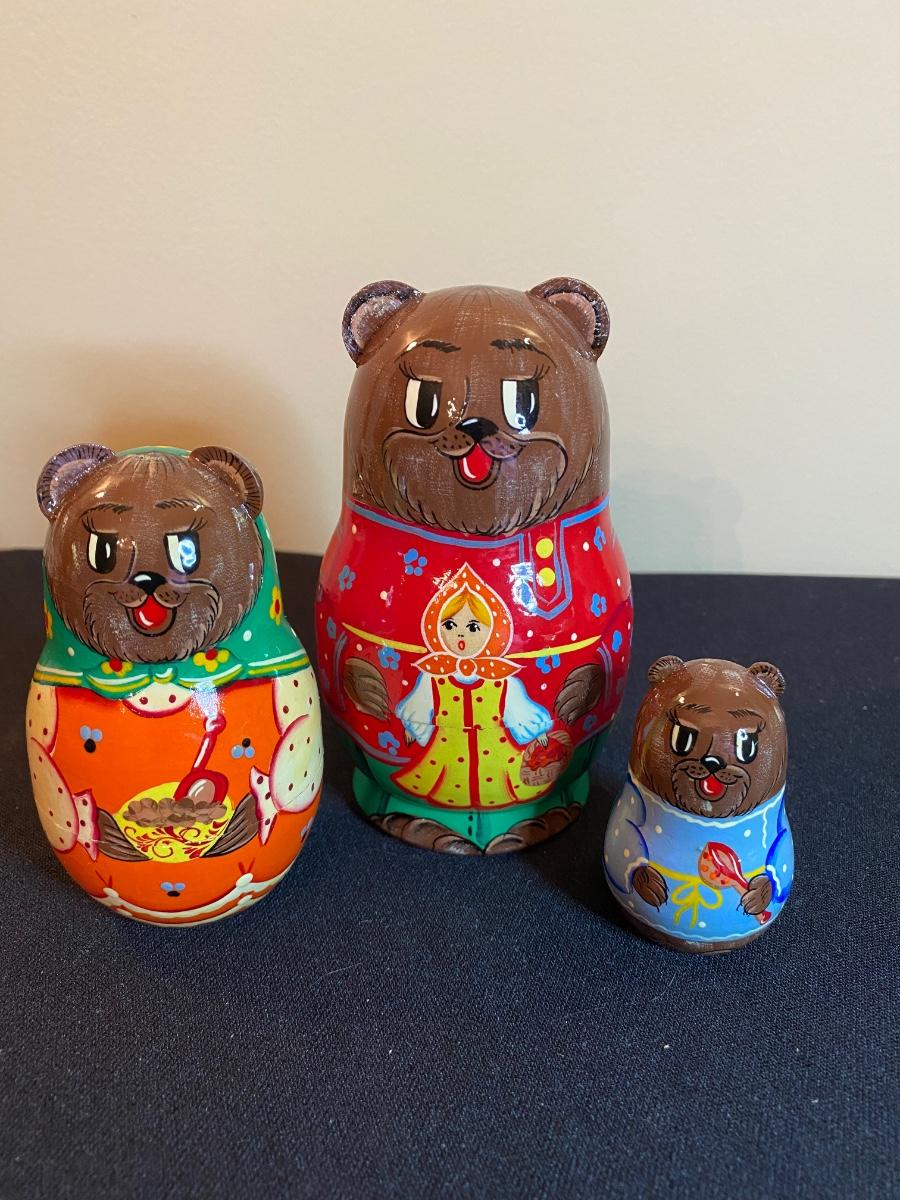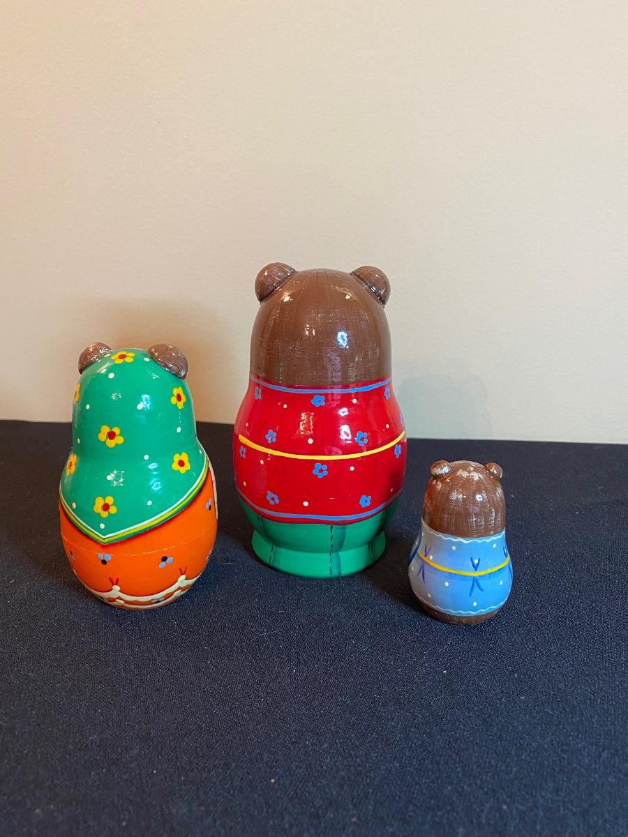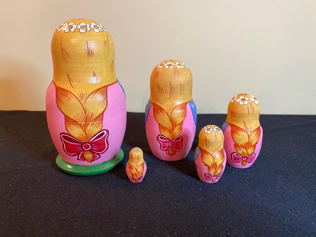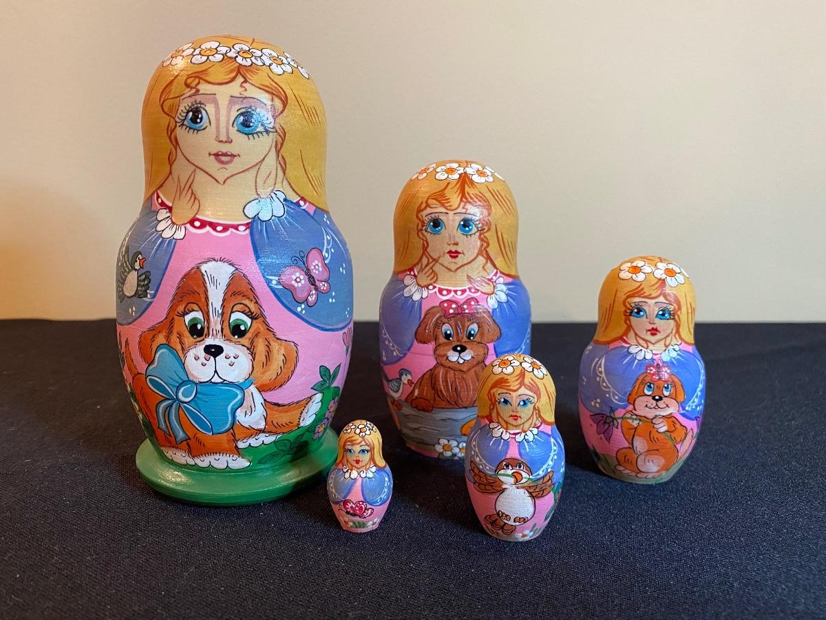 LOT 46C: Wooden Storybook Nesting Dolls &  Easter Bunny Nesting Eggs