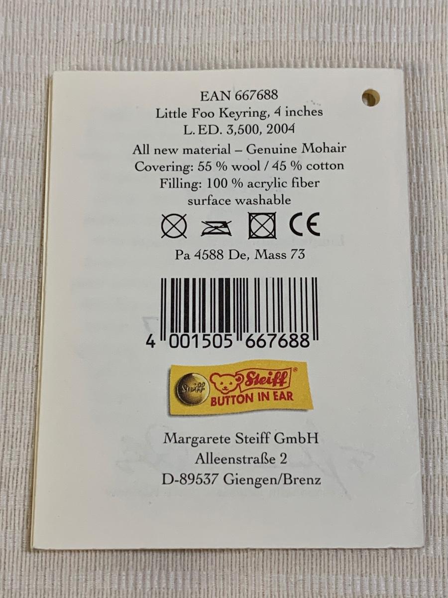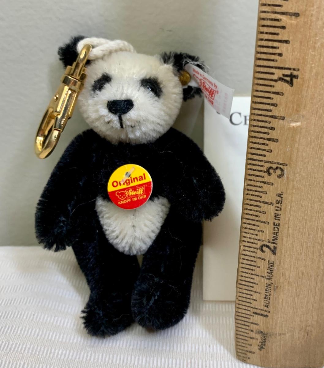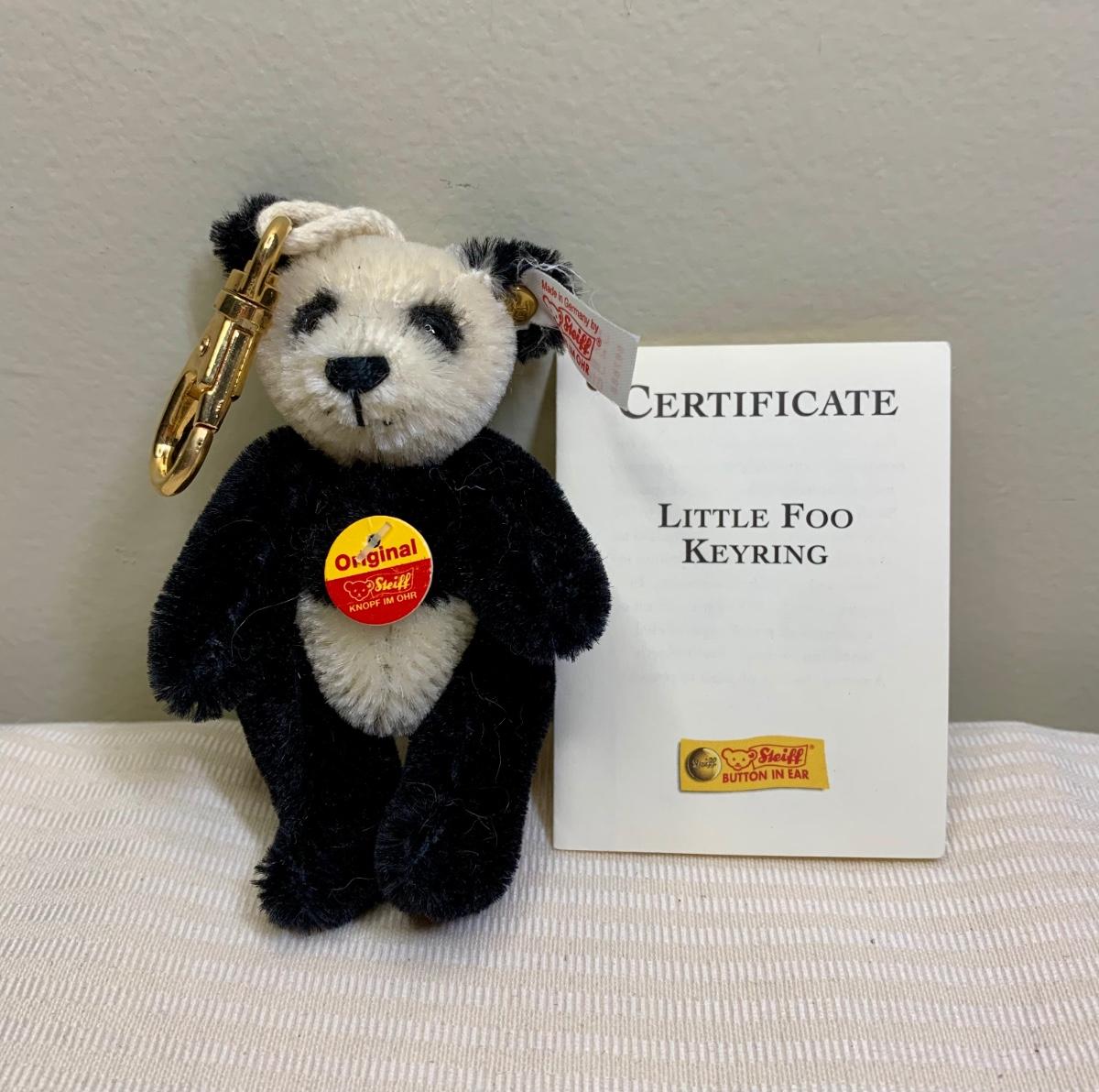 Vintage Steiff Keychain Little Foo Key Chain Panda Bear. With Tags. Mohair. Excellent. Measures 4" high. Button and Tag in ear. Made in Germany. Great Gift for the Holidays. Hang Little Foo on the Xmas Tree as a Surprise Gift!