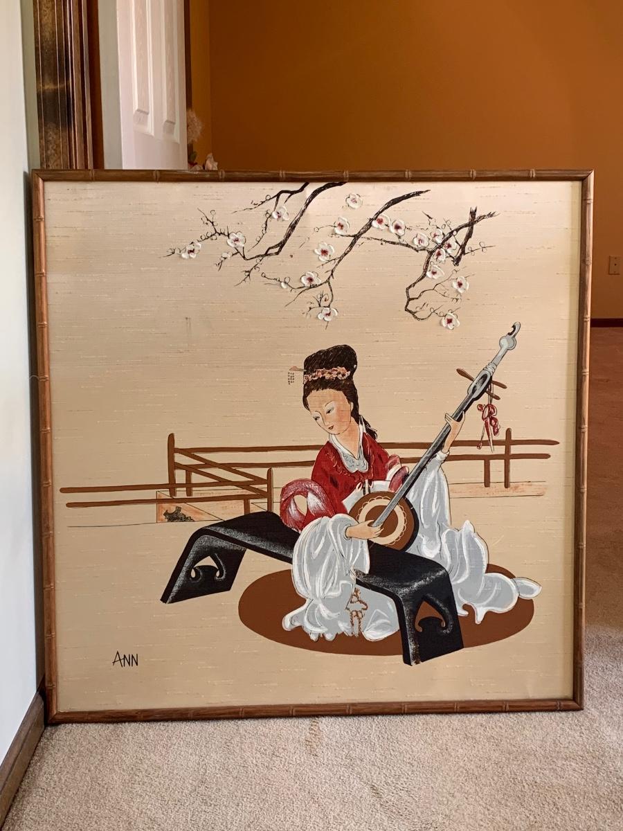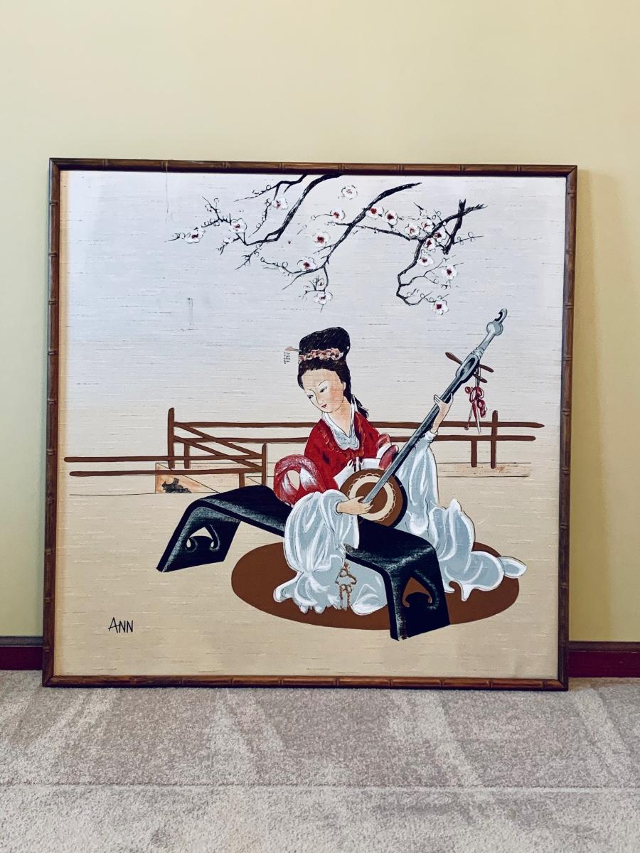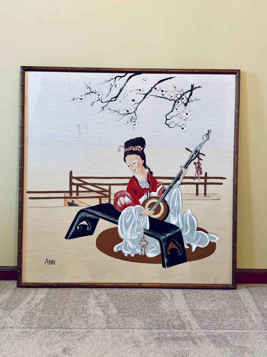 LOT 66R: Asian Inspired Painting in Bamboo Frame