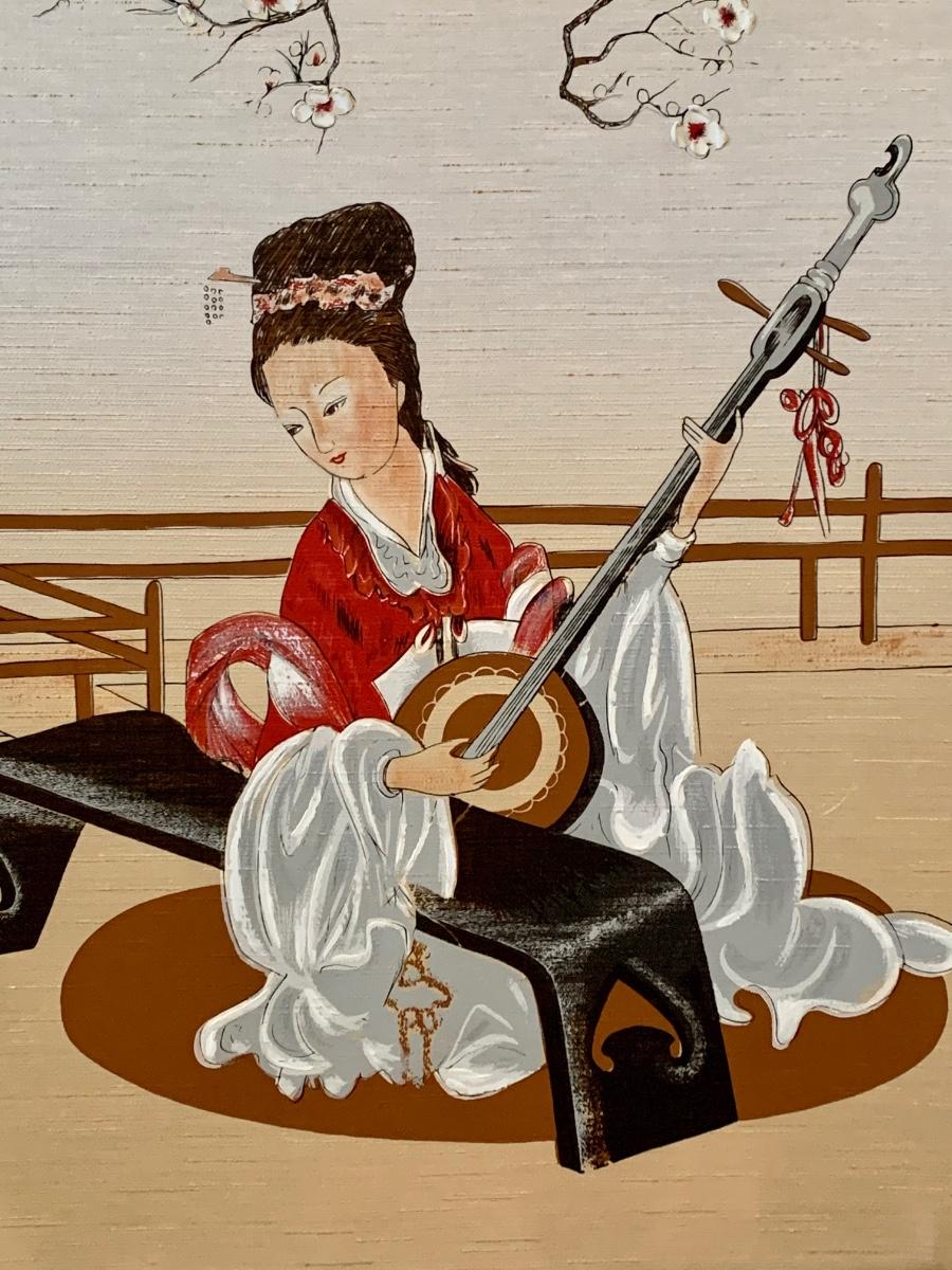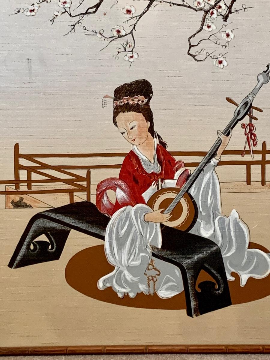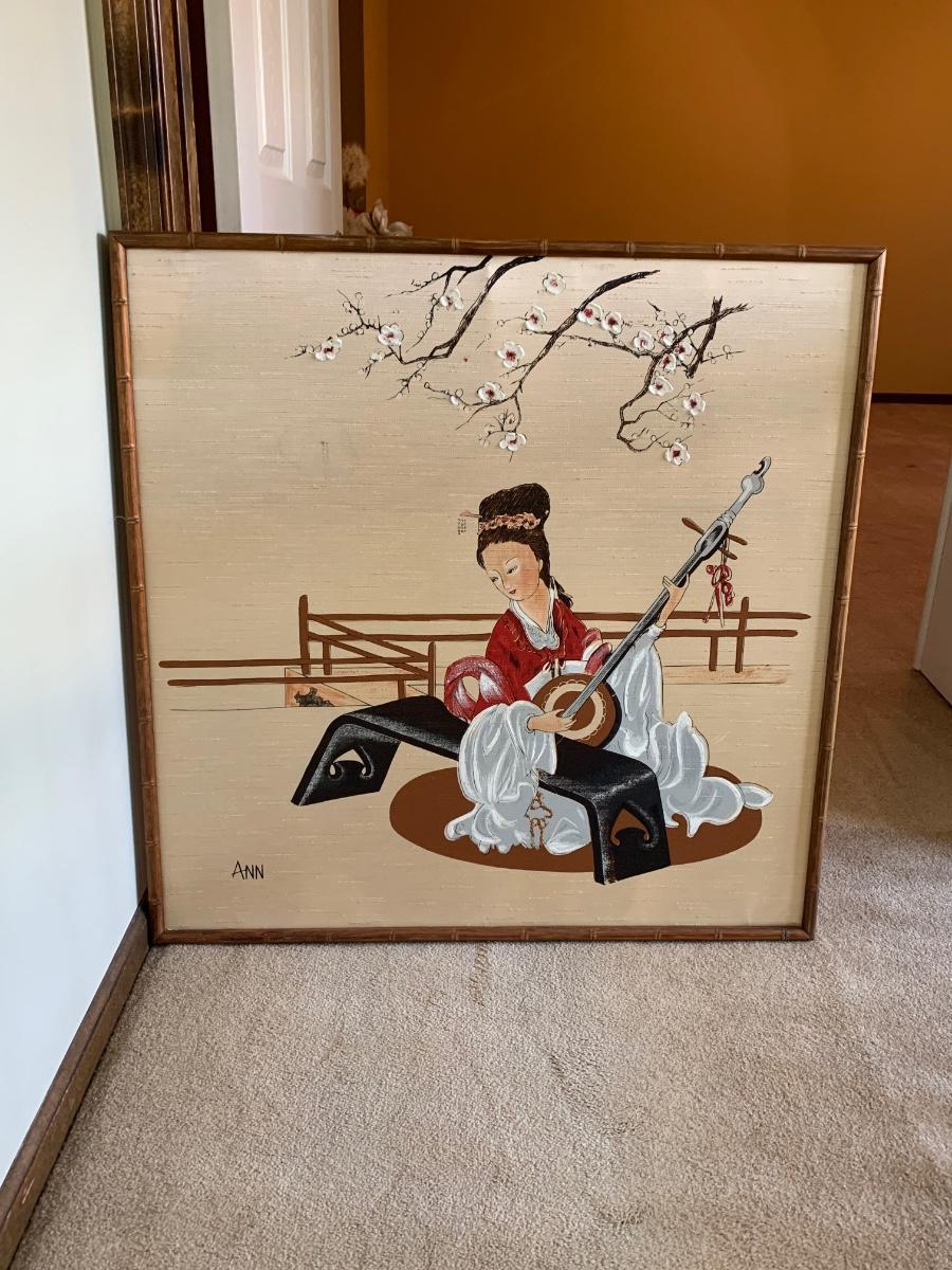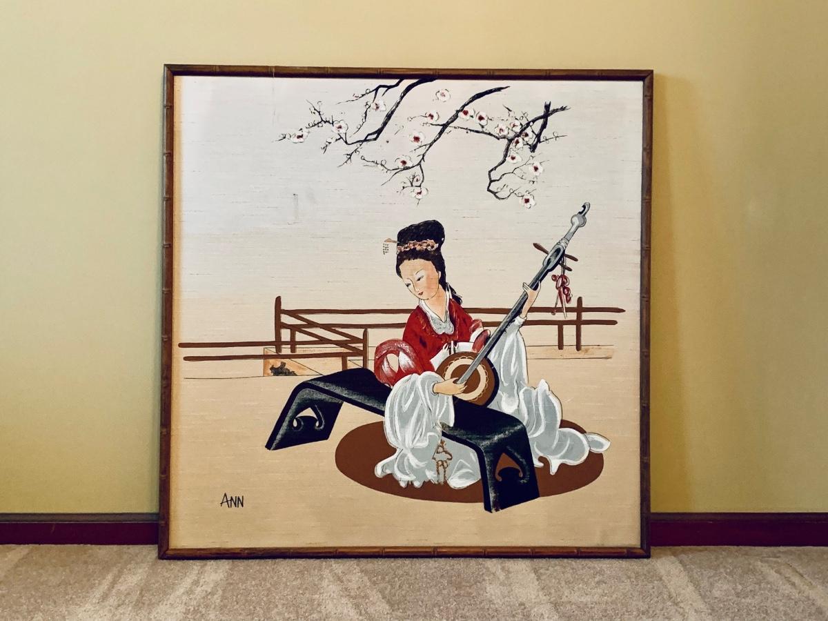LOT 66R: Asian Inspired Painting in Bamboo Frame