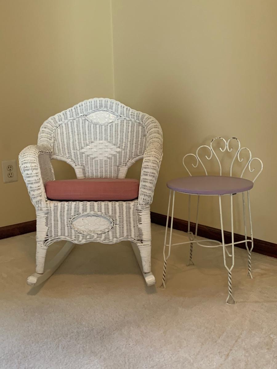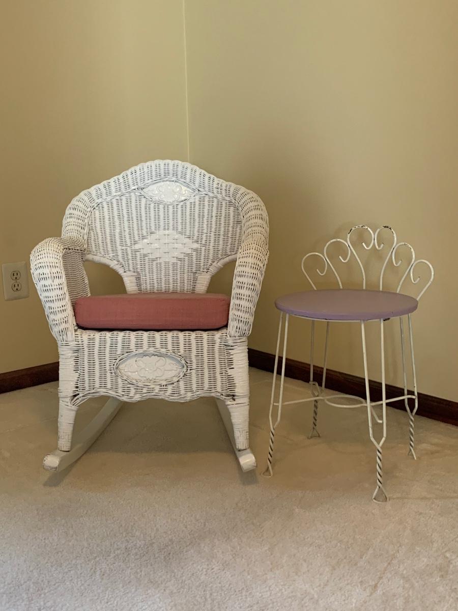 LOT 69R: Vintage Petite/Child’s Wicker Rocker and Vanity Chair