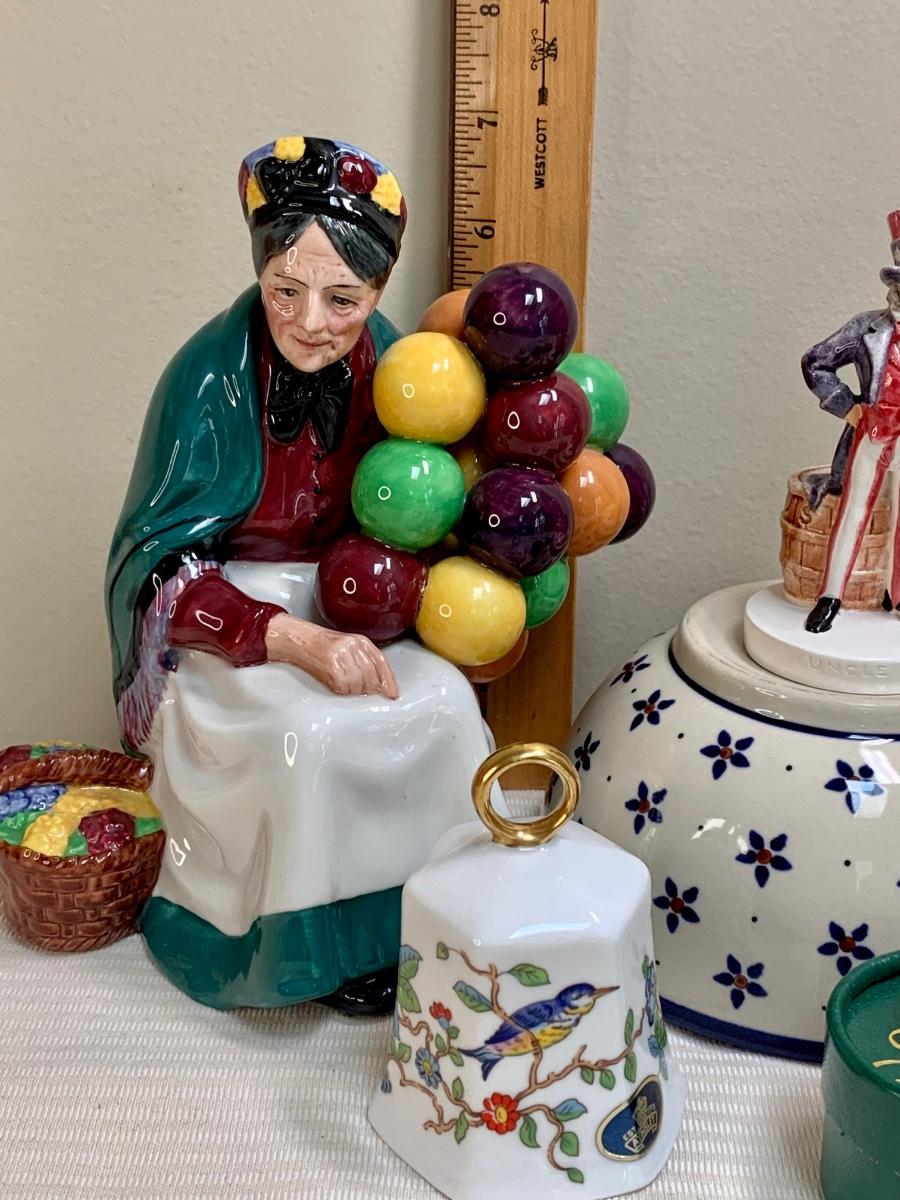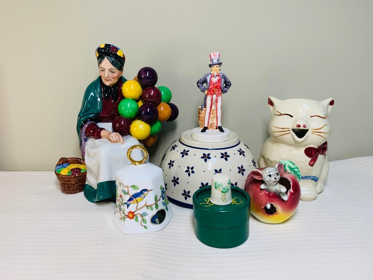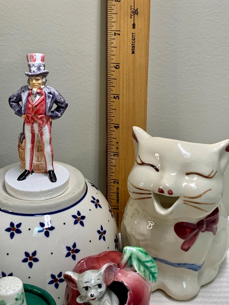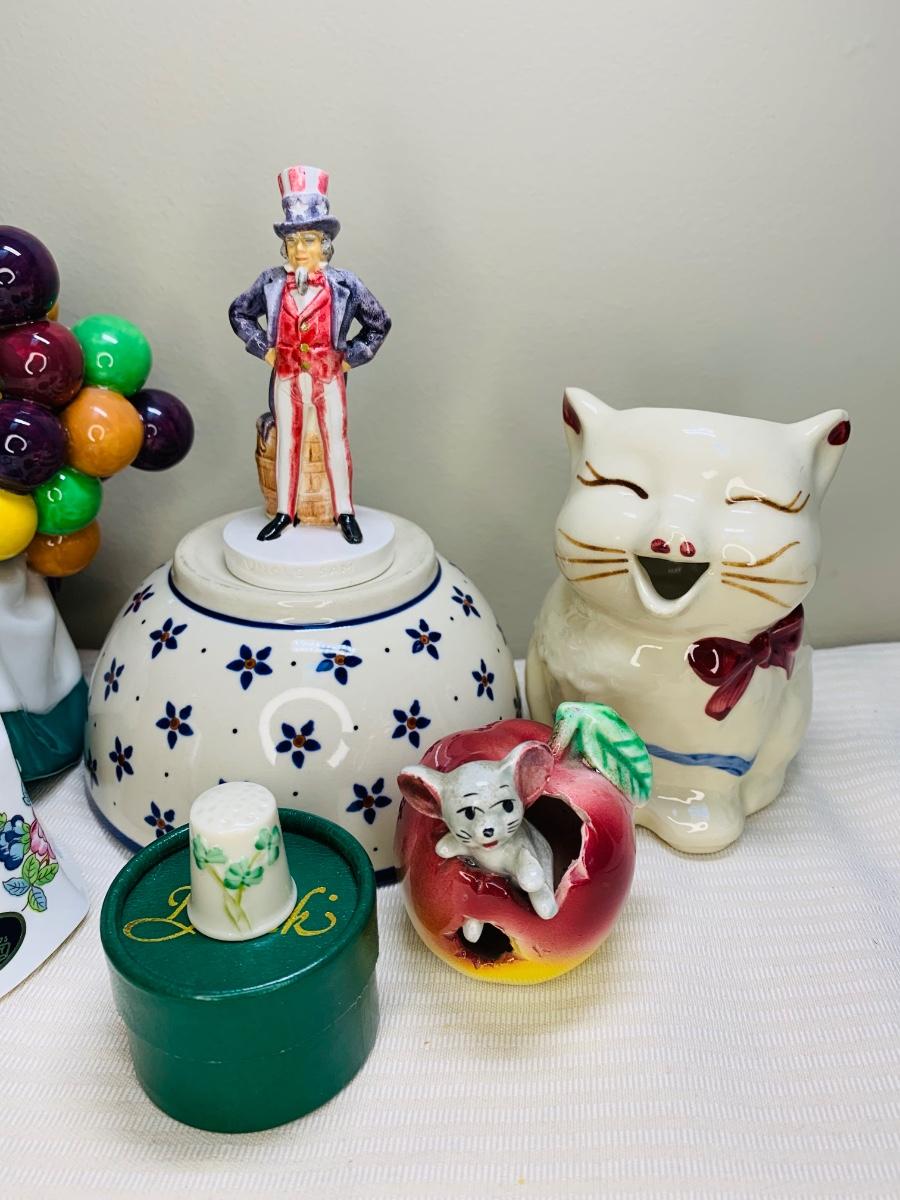 Nice lot of collectibles including a Sebastians Miniature 1967 Uncle Sam figurine, Aynsley England Bell, Poland Pottery bowl, and Shawnee Creamer (has hairline fissure). Please see all pictures as they are the best representation of the items. The pictures show condition, measurements if taken, and what is included in the lot. Due to the large amount that we photograph and the time frame, we are not always able to take measurements. All items unless noted, are pre-owned and have been used. If you purchased furniture, you must bring help. We do not allow one person to carry large furniture out on their own. Bring help, tools and a truck for the safety of our client’s homes, and your personal safety. Any damages that result to the property including walls, and floors due to moving of the furniture will be charged to the buyer. Company policy. Thank you.