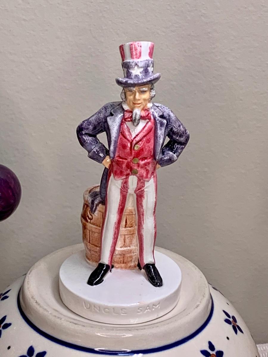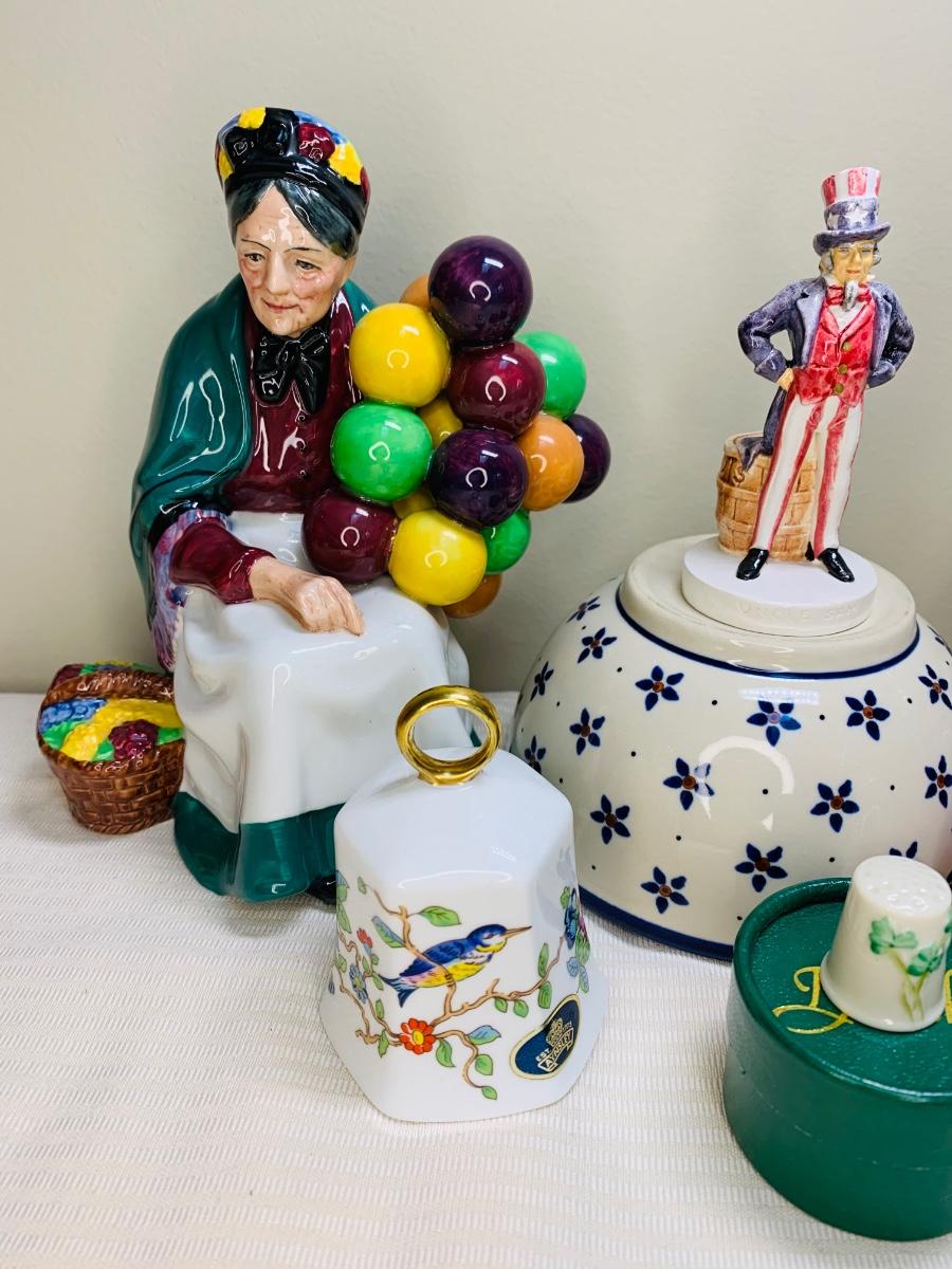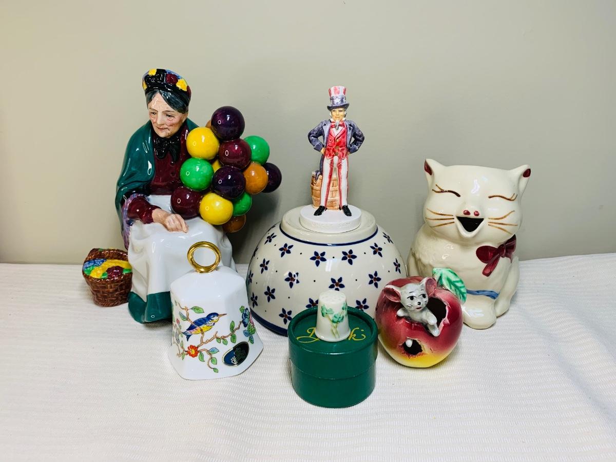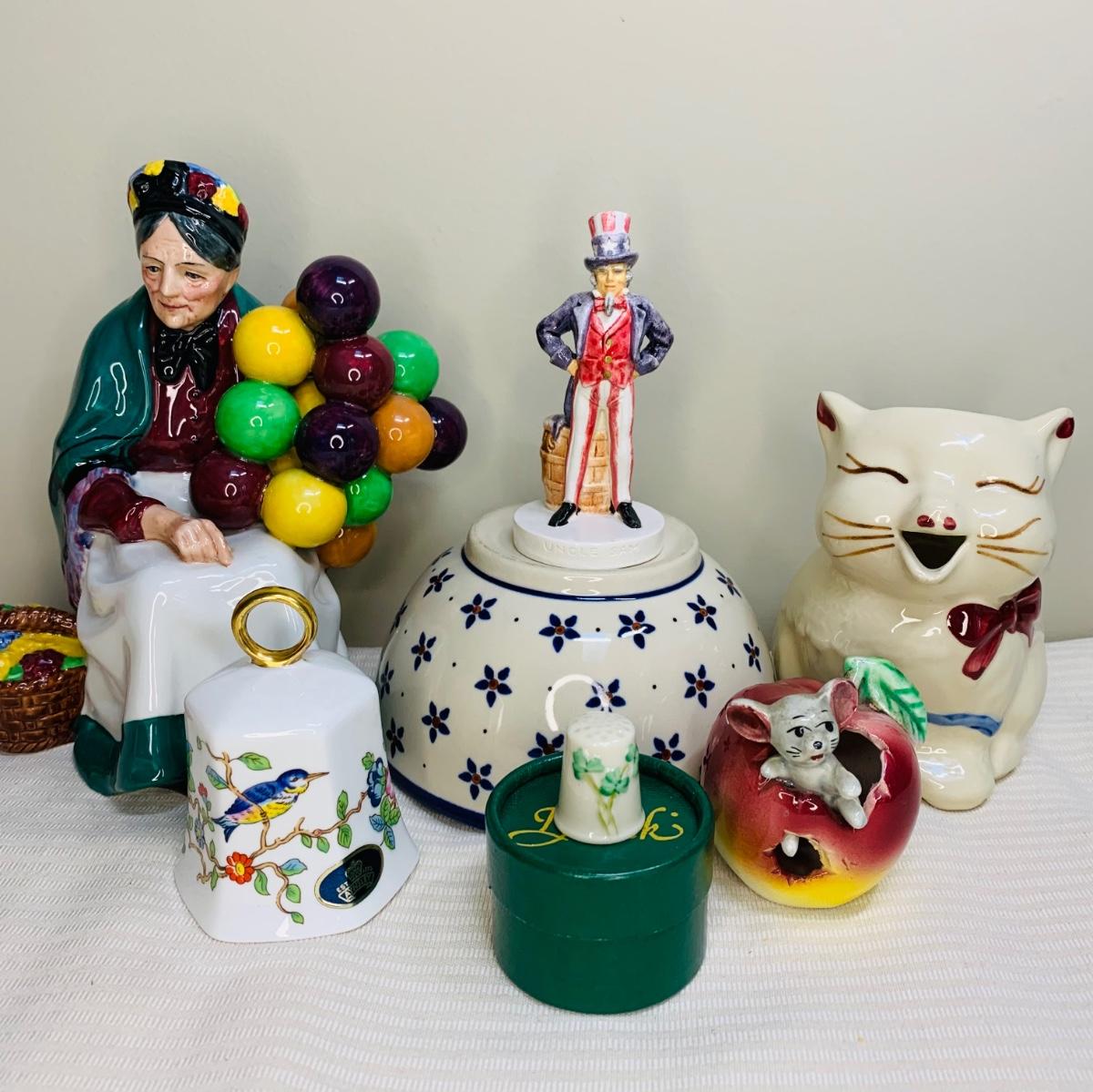 Nice lot of collectibles including a Sebastians Miniature 1967 Uncle Sam figurine, Aynsley England Bell, Poland Pottery bowl, and Shawnee Creamer (has hairline fissure). Please see all pictures as they are the best representation of the items. The pictures show condition, measurements if taken, and what is included in the lot. Due to the large amount that we photograph and the time frame, we are not always able to take measurements. All items unless noted, are pre-owned and have been used. If you purchased furniture, you must bring help. We do not allow one person to carry large furniture out on their own. Bring help, tools and a truck for the safety of our client’s homes, and your personal safety. Any damages that result to the property including walls, and floors due to moving of the furniture will be charged to the buyer. Company policy. Thank you.